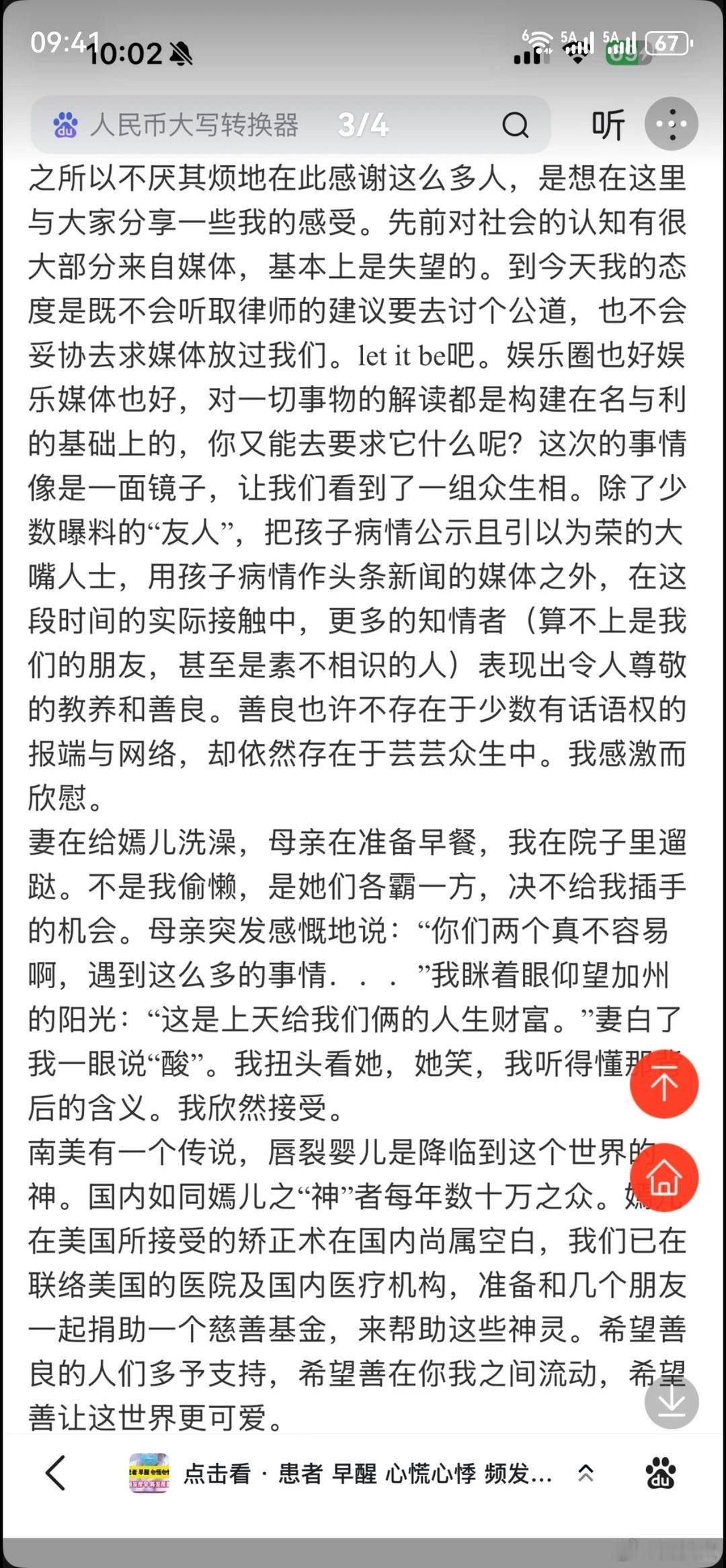 李亚鹏当年的博客,很是真诚,文笔也很好。 2006 年 8 月 12 日,李亚鹏写下一篇博客,温柔回应了女儿李嫣唇裂引发的外界争议。 字里行间满是感恩,他一一细数着要感谢的人:协和医院的医护人员、身边的亲友,还有许多素不相识的好心人。他还说起女儿的名字 —— 李嫣,字嫣然,这简单的字眼,藏着他和家人对孩子未来最温柔的美好期许。 那时李嫣已经完成治疗,正在家中安心静养,李亚鹏也在博客里轻描了几笔温馨的家庭日常。他还透露,自己会联合多方力量成立慈善基金,希望能帮到国内更多的唇腭裂患儿,把这份收到的善意,好好传递下去,温暖更多人。 从这信看,李亚鹏好像接受过很良好的基础教育,家庭教育也很好。 他真的写的很好,看起来很舒服的文字。 其中有一句:“善良也许不存在于少数有话语权的报端与网络,却依然存在于芸芸众生中。我感激而欣慰。” 20年后的李亚鹏应该感受到了。