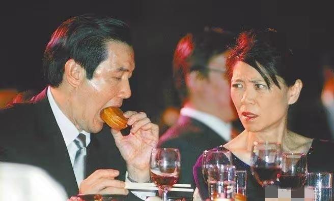 在马英九办公室的书架上,有一张照片比较让人忍俊不禁。就是我在第一张图片中标红的地方。 这张照片中,马英九大口吃红豆饼,一整个直接塞进嘴里,旁边的马英九夫人周美青皱着眉头,一整个很无语的表情,估计觉得马英九的吃相太不雅观了吧。马英九是出名的爱吃红豆车轮饼,大家吃过吗?真有这么好吃吗?