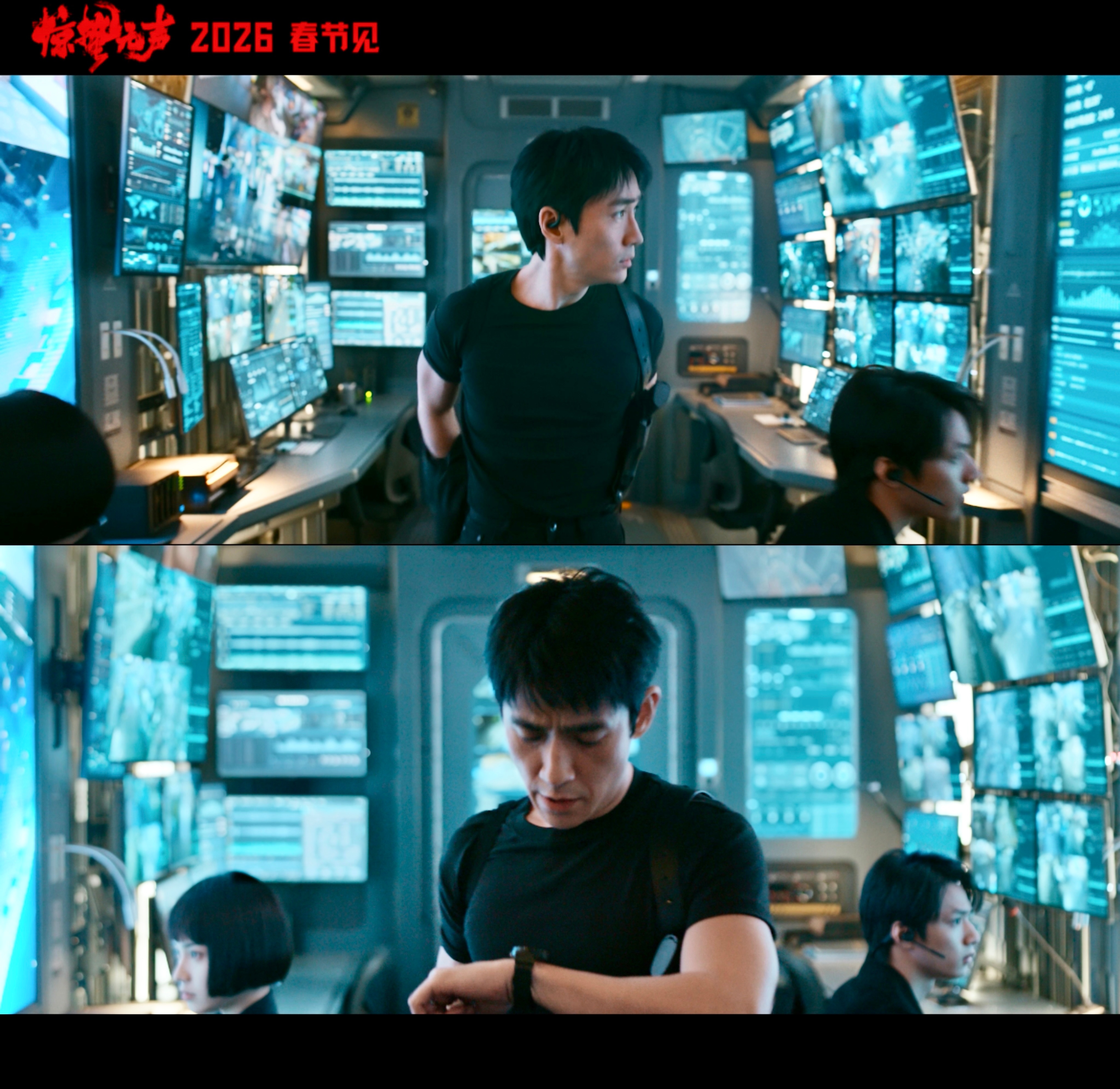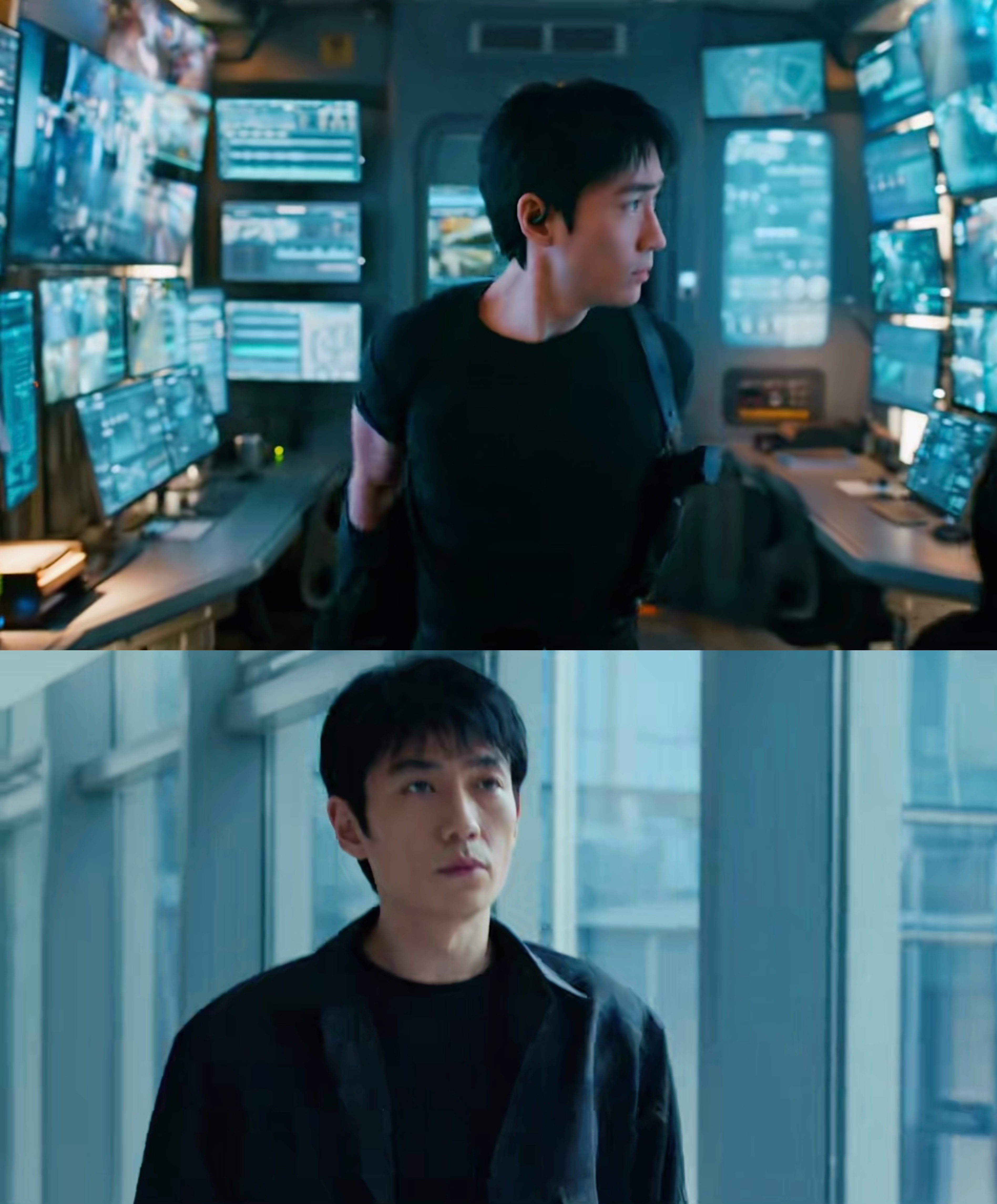 朱一龙紧身黑T恤造型朱一龙|惊蛰无声衣服越基础身材越权威!!谁来懂一下朱一龙这宽