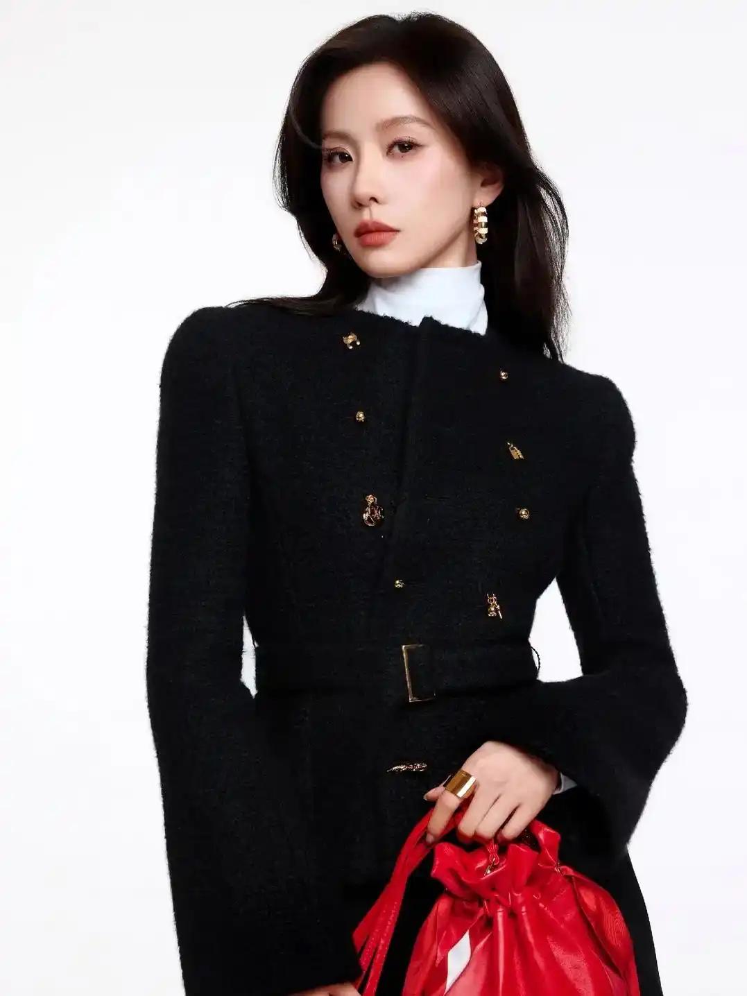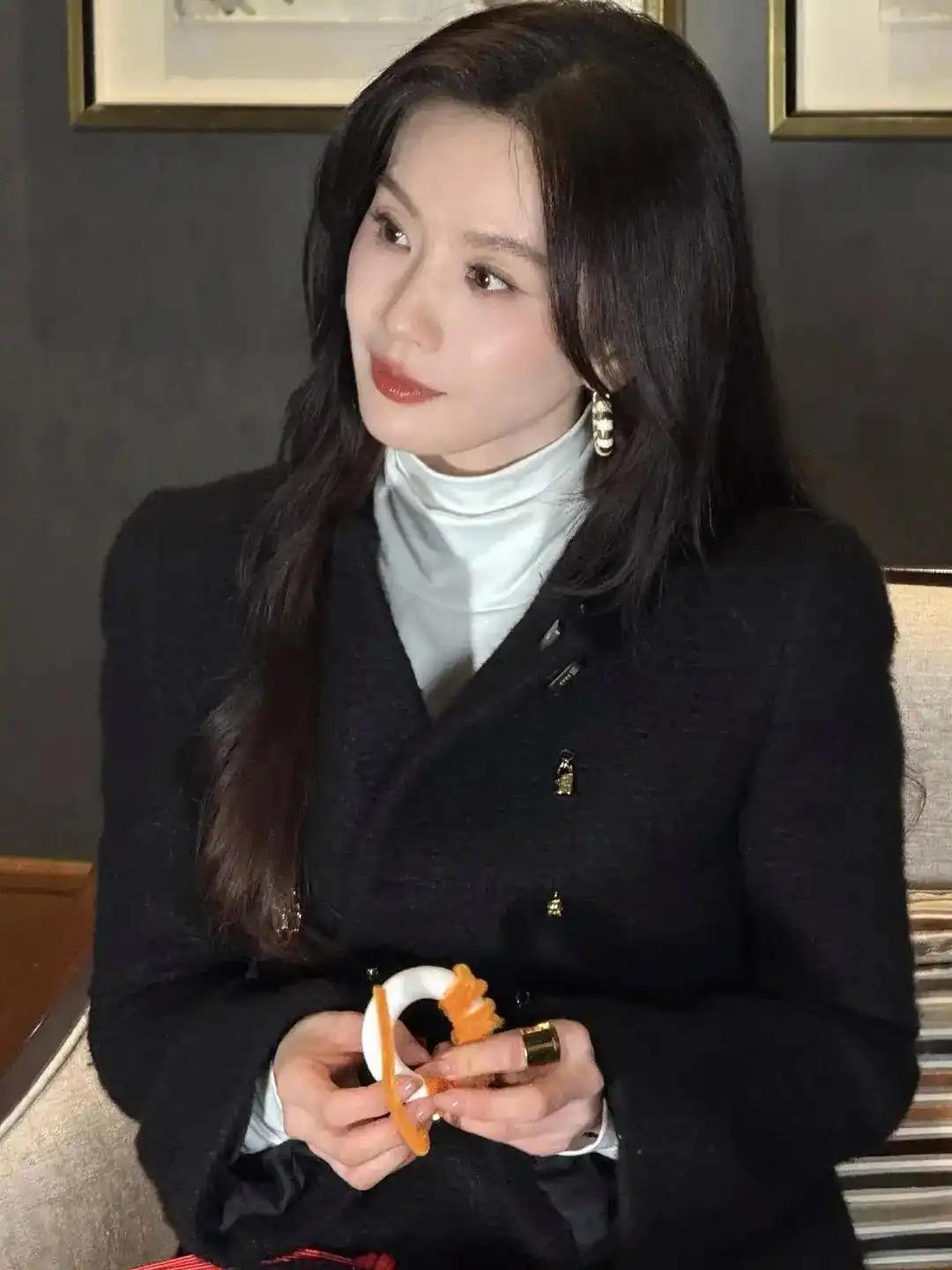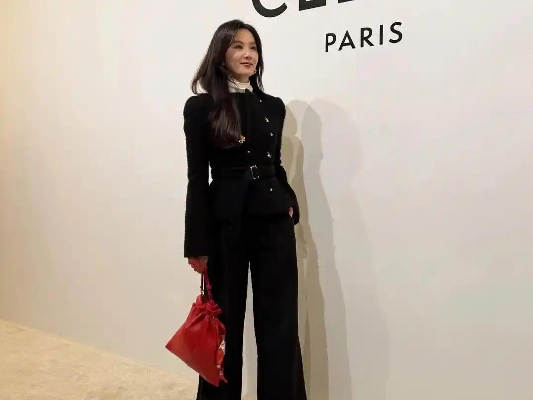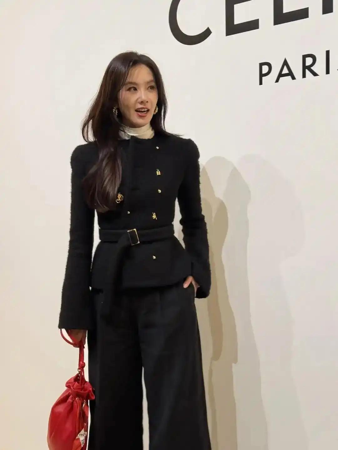 38岁的刘诗诗以CELINE廓形毛呢外套搭配阔腿裤,用静奢风诠释"温柔与漂亮"的极致融合。建筑感剪裁凸显芭蕾身姿,酒红手袋点睛全黑造型,细节处尽显"毫不费力的高级"。这份历经岁月淬炼的优雅,让她在群星中稳坐C位。