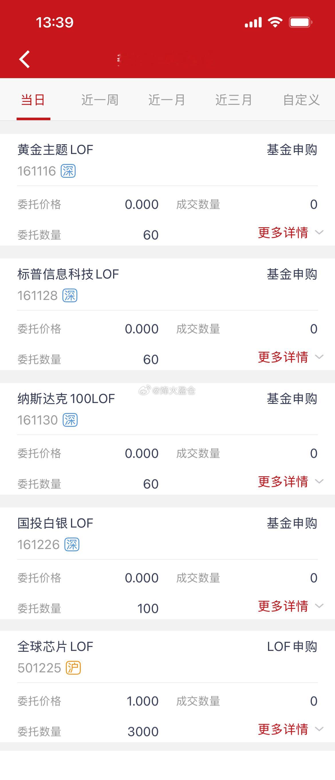 套利 今申购五只LOF基金 ,全球芯片限额100,场内申购1000成交100,剩余900过几天退回,昨晚看有说可拖拉机,我做会小白鼠实验一下。实盘贴图仅作为个人记录之用,不构成任何投资建议及操作指引!盈亏自负,切勿盲目跟风!