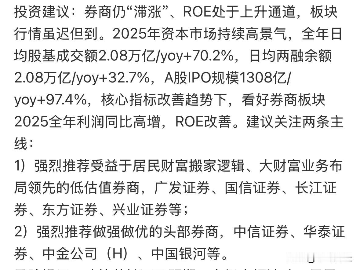 方正证券对于广发证券给出2025年利润预计是146亿元,同比增长51%,这在大型券商中算非常优秀的,毕竟作为龙头的中信证券300亿元的净利润,同比增长才38%而已。 假如方正证券预测大致差不多,那么以广发证券不到1800亿元的总市值来计算,市盈率仅12倍而已。 所以持仓广发证券有什么好担心的呢? 何况市净率也就1.35倍,指标同样比中信证券略强一些。 而且在财富管理方面,广发证券还具有良好的独特区域优势。 乐呀财经