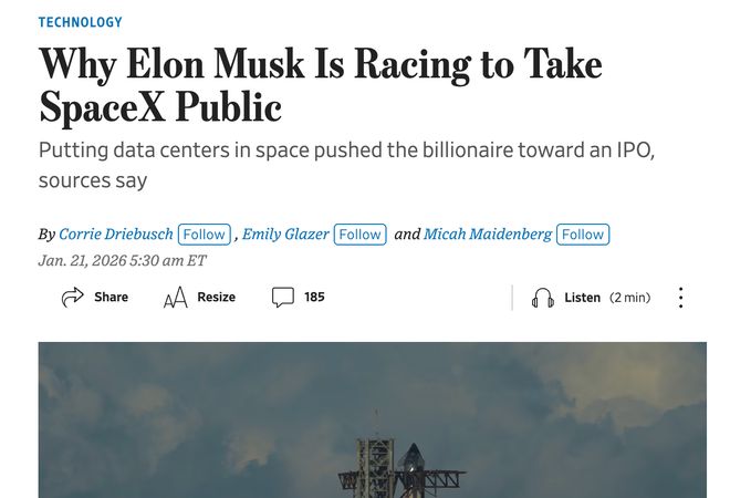 此前SpaceX一直宣称会保持私有化状态。2018年,该公司总裁格温·肖特韦尔就曾表示,不应等到定期火星飞行任务建立后再考虑上市。马斯克本人也多次抱怨,成为上市公司会让他在管理特斯拉时面临诸多掣肘。然而,去年马斯克对SpaceX潜在首次公开募股(IPO)的态度突然转变,令业界许多人感到意外。