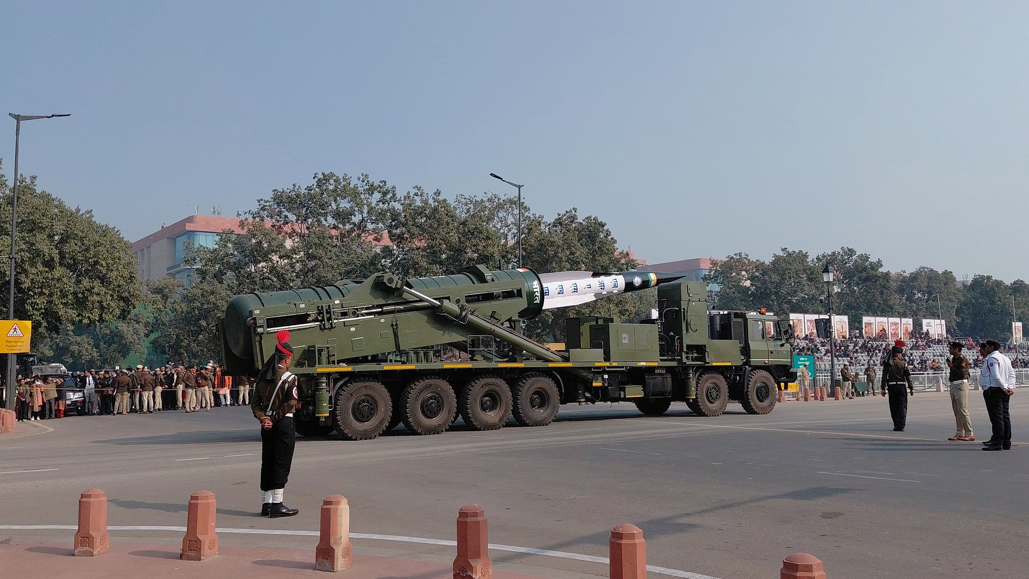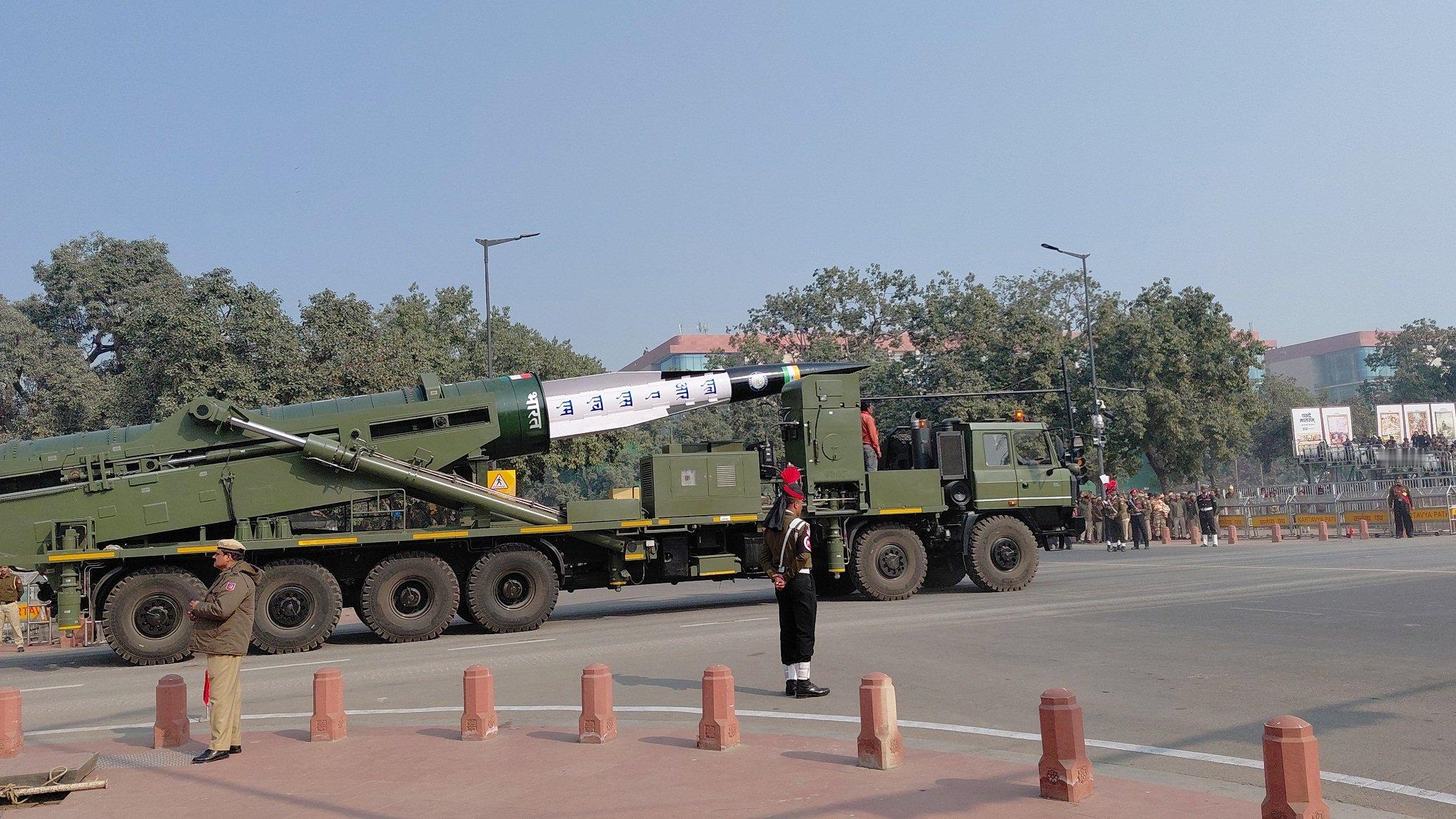 每天认识一件兵器 印度将在共和国日阅兵式上展示DRDO研制的远程高超高声速反舰导弹(LR-AShM)。2023 年 10 月,该导弹进行了首次试射,飞行距离为 250 千米。2024 年 11 月 16 日,在奥里萨邦海岸附近的阿卜杜勒・卡拉姆博士岛,印度成功进行了 LR-AShM 导弹的飞行试验。图五是在2024年11月16日的测试中,该导弹顶着盖子起飞的名场面,号称印度飞饼。该导弹属于助推滑翔类高超声速导弹,采用常规导弹气动设计,以提升末段飞行机动性,据称最大射程可达1500km。