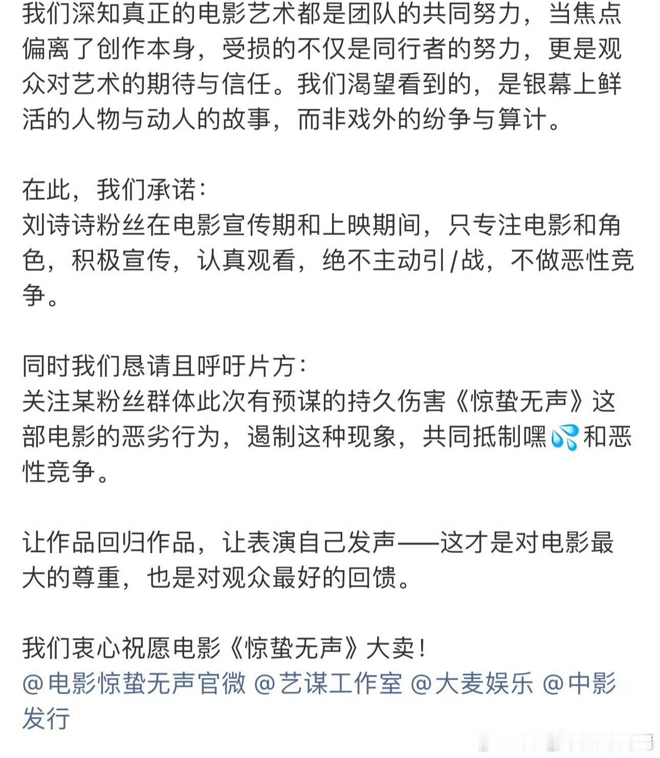 刘诗诗粉丝电影《惊蛰无声》倡议书