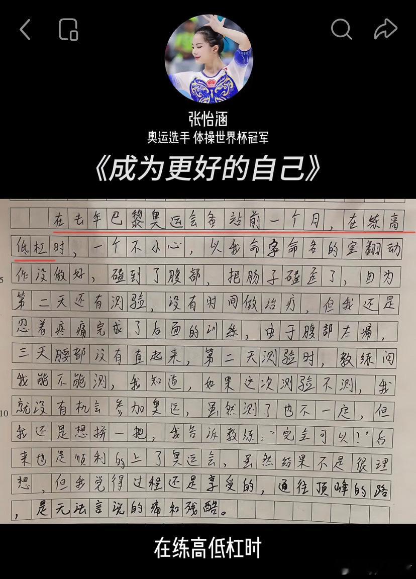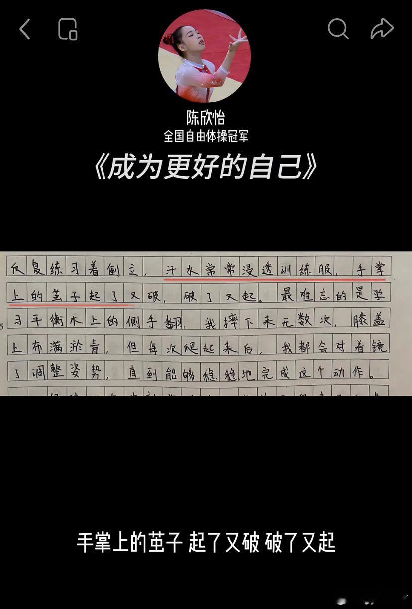 在隔壁刷到一位老师发的运动员写的作文,练体操是一件很辛苦的事情,而勇敢的你们坚持下来了💪体操张怡涵秦心怡张晓轩陈欣怡
