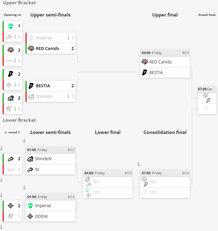 此外,南美区封闭预选赛方面,Fluxo和Sharks首日同样两连败出局,BESTIA和REDCanids两连胜。