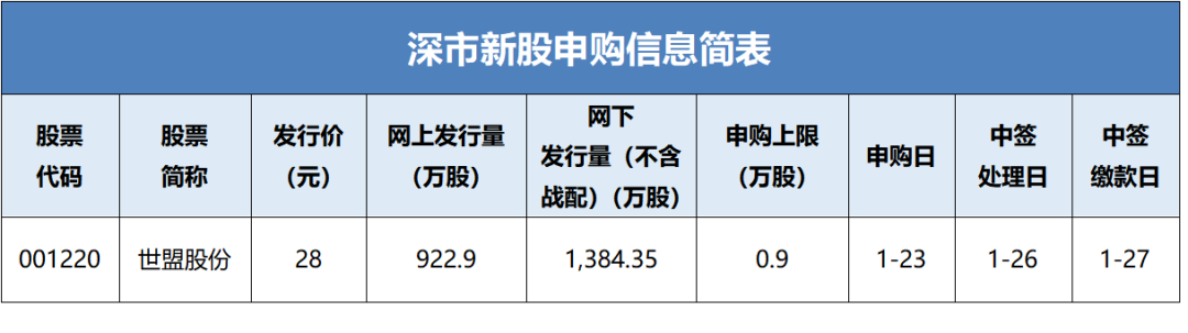 2026年1月23日,世盟供应链管理股份有限公司(简称:世盟股份)将通过深交所网下发行电子平台和交易系统发行新股,具体信息如下。