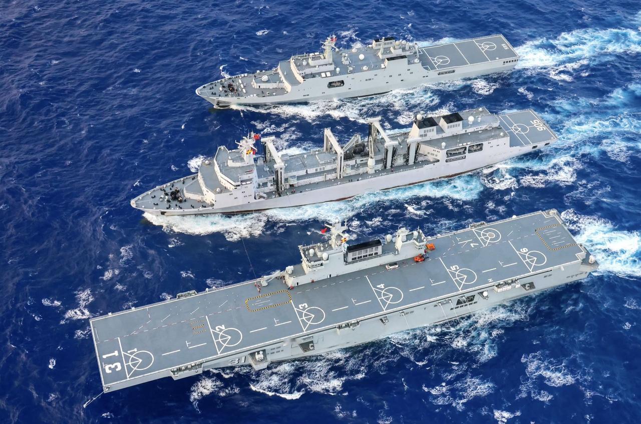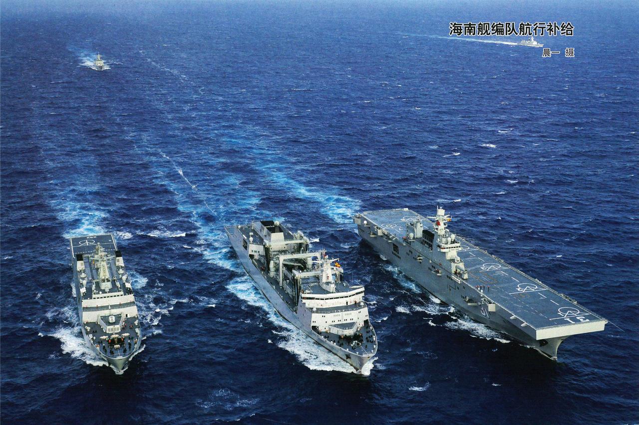 武德充沛,航行补给中的海南舰两栖远洋编队。