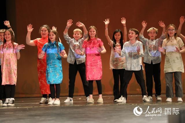 当地中文班学生表演《恭喜恭喜》歌曲节目。人民网记者李志伟摄