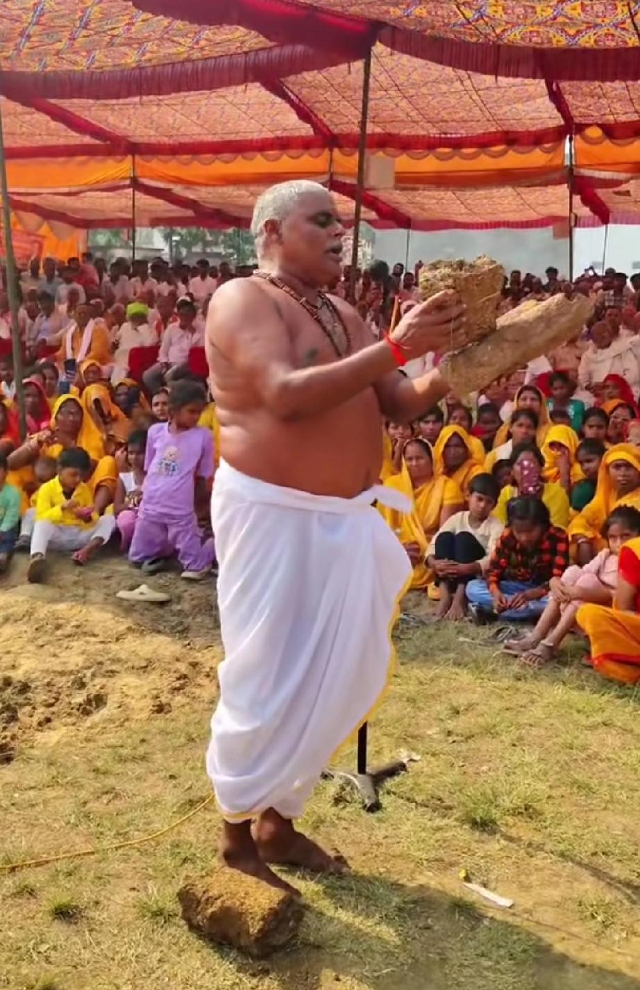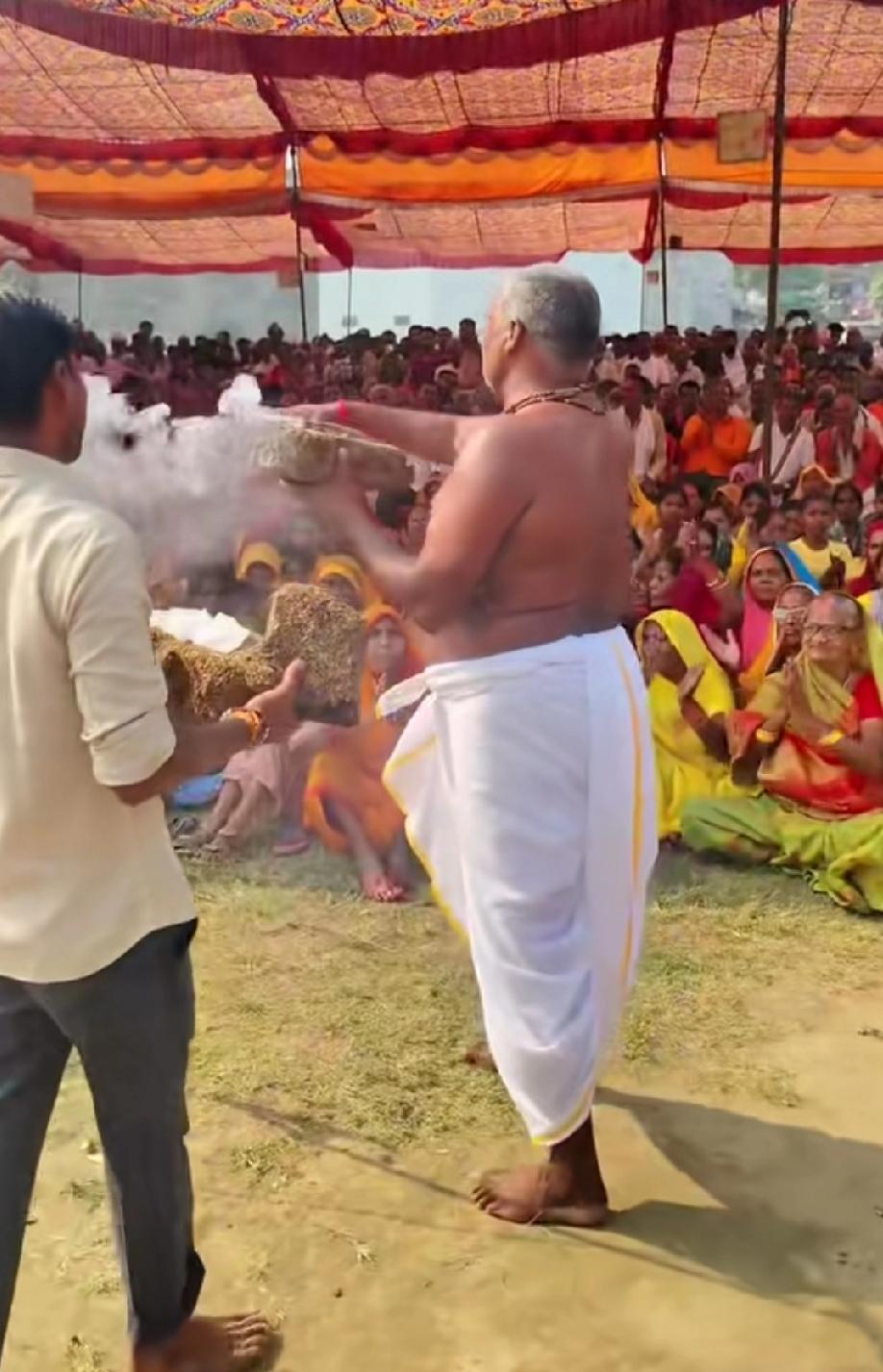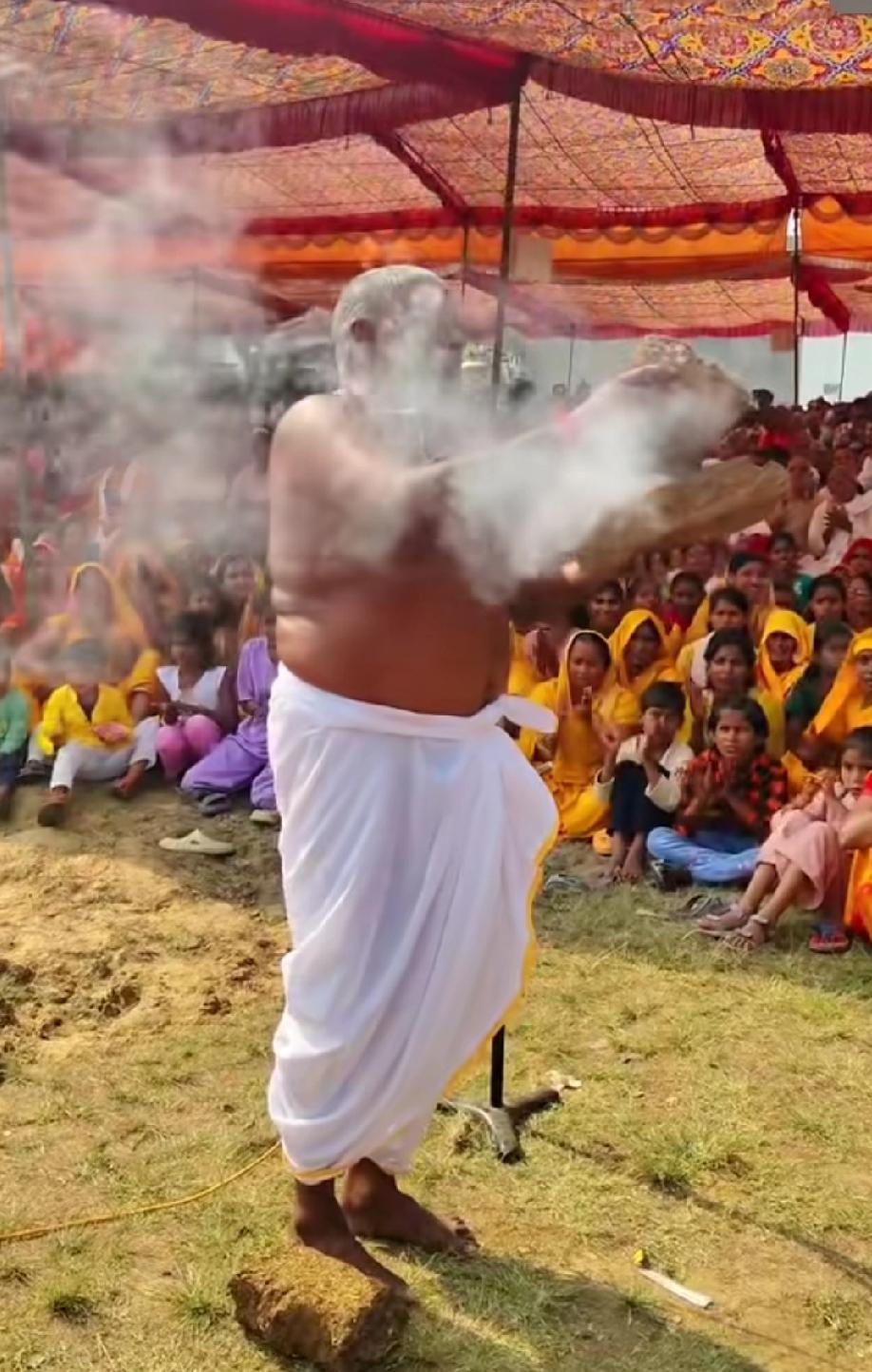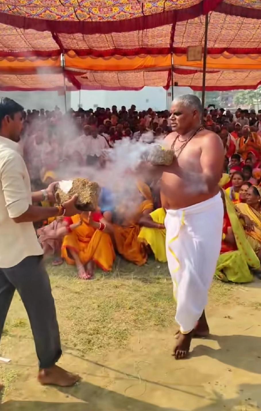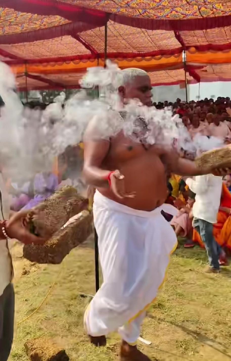 印度人又整活了,印度高僧手拿牛粪,用意念当场将牛粪自燃,厉害。