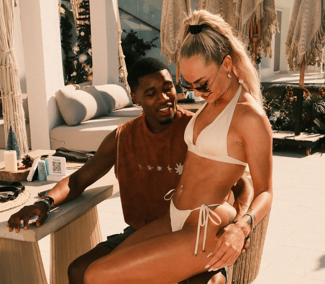 这趟海滩之旅,Alisha将一头金发扎成了标志性的高马尾,二人还在海滩俱乐部拍下了亲密同框照。Montel还分享了诸多甜蜜瞬间:两人默契配合完成专属握手礼,随后甜蜜拥吻;这对新晋情侣还含情脉脉对视,之后又一起打起沙滩排球,秀了一波球技。