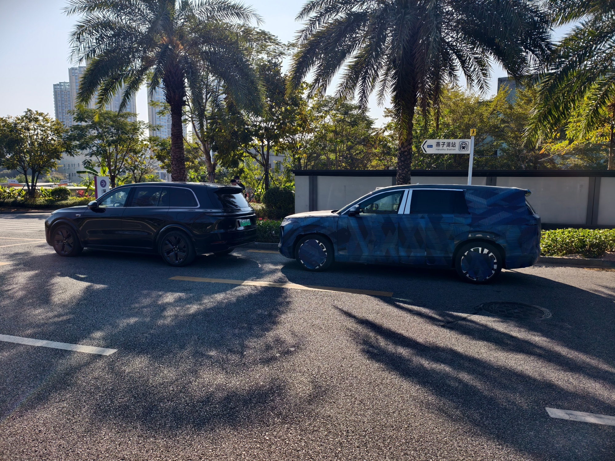 比亚迪王朝系列全新D级SUV的伪装车曝光,居然和理想L9、问界M9停在了一起。