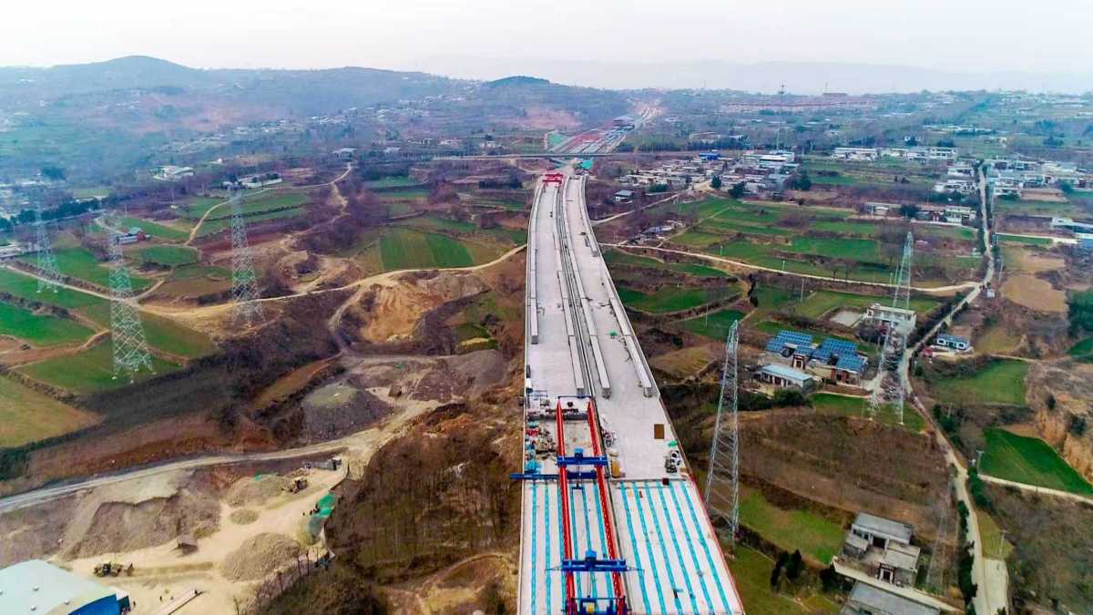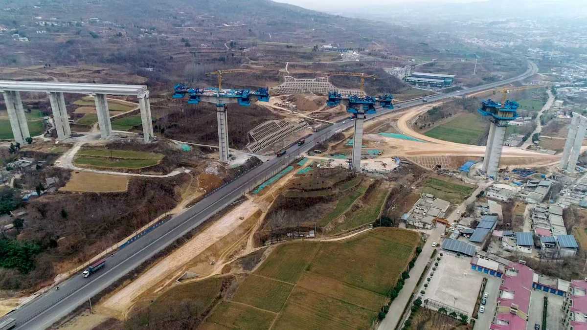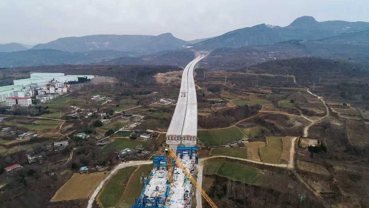 在施工区域,记者看到,新襄段内2座隧道(鸡冠山隧道、荟萃山隧道)已全幅贯通,剩余隧道内沥青路面铺设预计明年秋季将实施完工。路基土石方施工现场,工人们迎着寒风操控设备,多台大型机械联合作业,已完成总工程量的92%。作为项目建设的重中之重,桥梁工程各节点呈现“快慢并进多点突破”的推进态势。主线上跨G343分离式立交桥施工现场,桥墩整齐林立,桥面铺装有序推进,工人们正在高空作业平台上有条不紊地施工。最新数据显示,该座桥梁桩基、下构工程均已100%完工,桥面铺装完成24联,占总量的70.6%。主线上跨宋告铁路分离式立交桥也稳步推进,桩基完成占比98.4%,下构完成占比75.8%。主线上跨平陌互通C匝道分离式立交桥处于攻坚阶段,目前该桥桩基完成34根,占总数的56.6%,施工方加大人力物力投入,克服冬季施工难题,全力追赶建设进度。