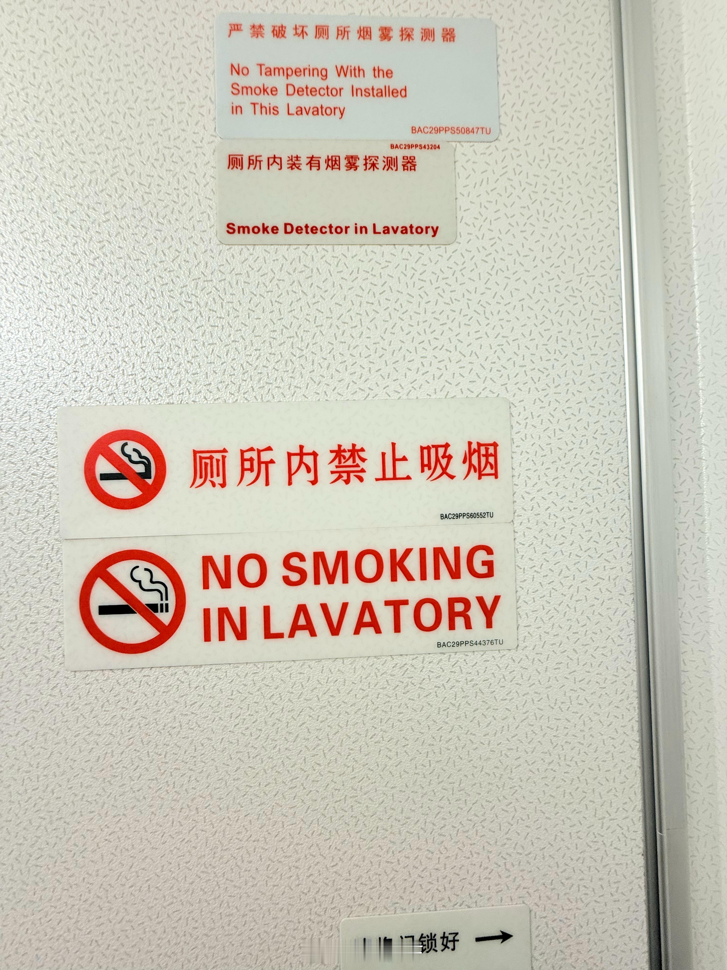 不懂就问:为啥飞机厕所门上写着禁止吸烟且有烟雾报警器,还同时有一个烟灰缸???以前是可以在厕所吸烟的吗