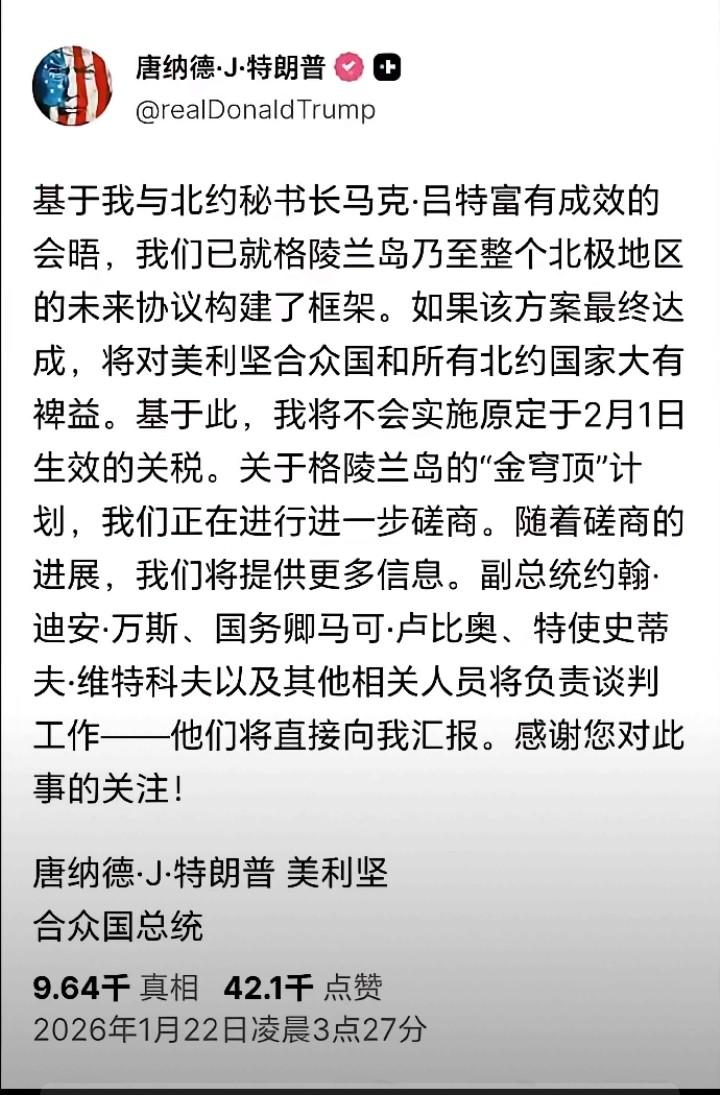 特朗普还是怂了!瑞典国家养老基金巨头清仓了美债,结果导致昨晚美国股债汇三杀,走投无路的丹麦昨天也宣布要抛售美债,如果欧洲其他国家陆续跟进的话,在大规模抛售美债之后,估计要跪的可能就是特朗普了。 这可不是小事。瑞典和丹麦的养老基金,加起来扔了将近90亿美元的美债。人家说了,就是觉得美国那边风险太大,财政状况让人心里没底。 市场立马就炸了。美股跌了,美债跌了,美元也跌了。这就好比三个人原本站在一起,现在被同时踹了一脚。全球市场也跟着抖三抖,金价嗖嗖往上涨,大家都想找个安全地方躲躲。 特朗普政府能不慌吗?国债收益率一上去,他们以后借钱还利息的成本就高了。老百姓的房贷压力也会变大。这可不是什么好消息。 为啥欧洲反应这么大?导火索恐怕是特朗普之前威胁要对丹麦等几个国家加征关税,还打格陵兰岛的主意。欧洲人觉得,这已经超出普通的贸易摩擦了,是拿经济手段去达成政治和领土目的。 欧洲已经开始准备反击了,说要拿出上千亿美元的对等措施。法国总统马克龙直接批评美国的做法“不可接受”。大家都在盯着挪威那个巨无霸的主权财富基金,看它会不会有下一步动作。 但美国是不是就这么容易被扳倒?也不一定。抛售的规模和美债市场总量比,还只是九牛一毛。有华尔街大行就说,全球资本目前还真找不到比美债更好的选择。 不过这件事真正的杀伤力,是打击了市场的“信心”。大家开始怀疑美国的财政纪律和政策的可预测性。金融市场不怕坏消息,就怕不确定性。特朗普政府那种让人摸不着头脑的做派,正在一点点磨损美元的信用根基。 举个例子,这就好比一家信誉一直很好的大公司,突然开始说话不算数、行为反复无常。哪怕它资产还很雄厚,合作伙伴心里也得犯嘀咕,开始提前做些准备,以防万一。 说到底,这次金融震荡更像是一记响亮的警钟。它提醒所有人,在全球经济紧密相连的今天,再强大的国家也不能为所欲为。当最亲密的盟友都开始用脚投票,麻烦可能就真的来了。 各位读者你们怎么看?欢迎在评论区讨论。