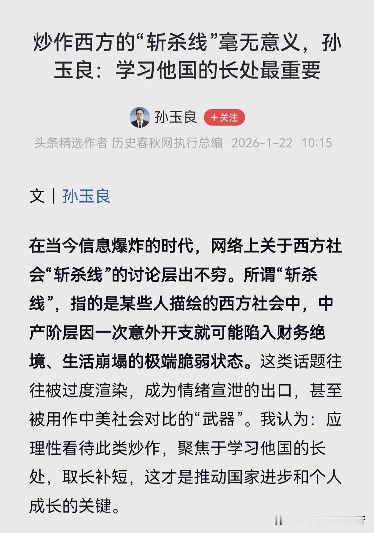美国财长说:孙良玉,我谢谢你! 美国财长亲口认了斩杀线的实锤,孙玉良作家还在闭眼洗地,硬说讨论这事儿是炒作。眼瞅着37%美国人拿不出400美元应急费,他却忙着替美国遮丑,把客观事实说成情绪宣泄,这双眼睛怕是只看得见美国的所谓“长处”,看不见底层民众的绝境。 一边标榜理性,一边搞双重标准,真是滑天下之大稽。美国制度酿的苦果摆在眼前,孙作家不辨是非反倒指责讨论者,还扯什么中美对比的“武器”,说到底不过是被西方迷了眼,甘愿做美化资本社会的传声筒。 孙作家口口声声说要学习他国,却连基本的事实都不敢正视。无视美国的沉疴,反倒阴阳自家的问题,这般本末倒置的“理性”,不过是崇洋媚外的遮羞布。美国的斩杀线斩碎了全民富裕的神话,也斩碎了他自欺欺人的幻想。 孙作家,你这么干,有人发钱给你吗?