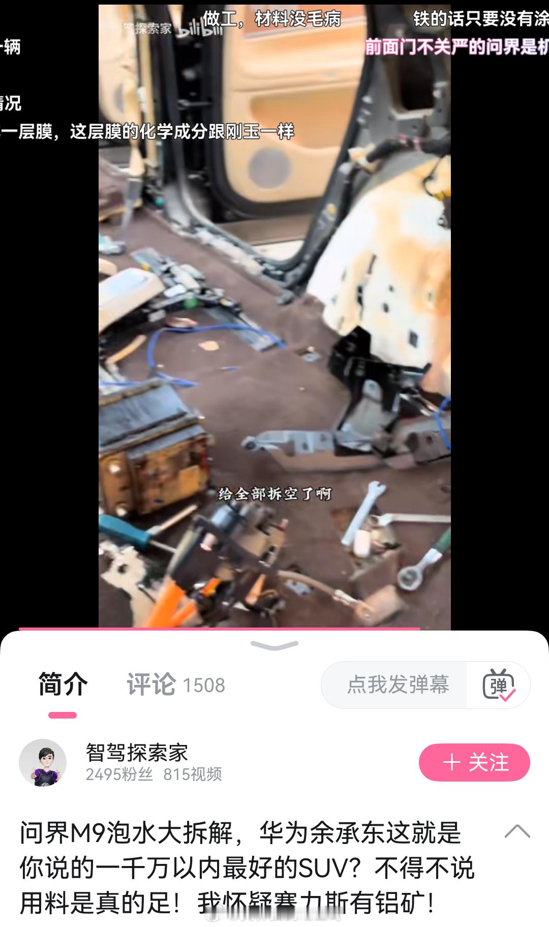 刷到一个问界M9的拆车,之前好几个人跟我说不能拆,这不也有拆的吗?我还是不理解他