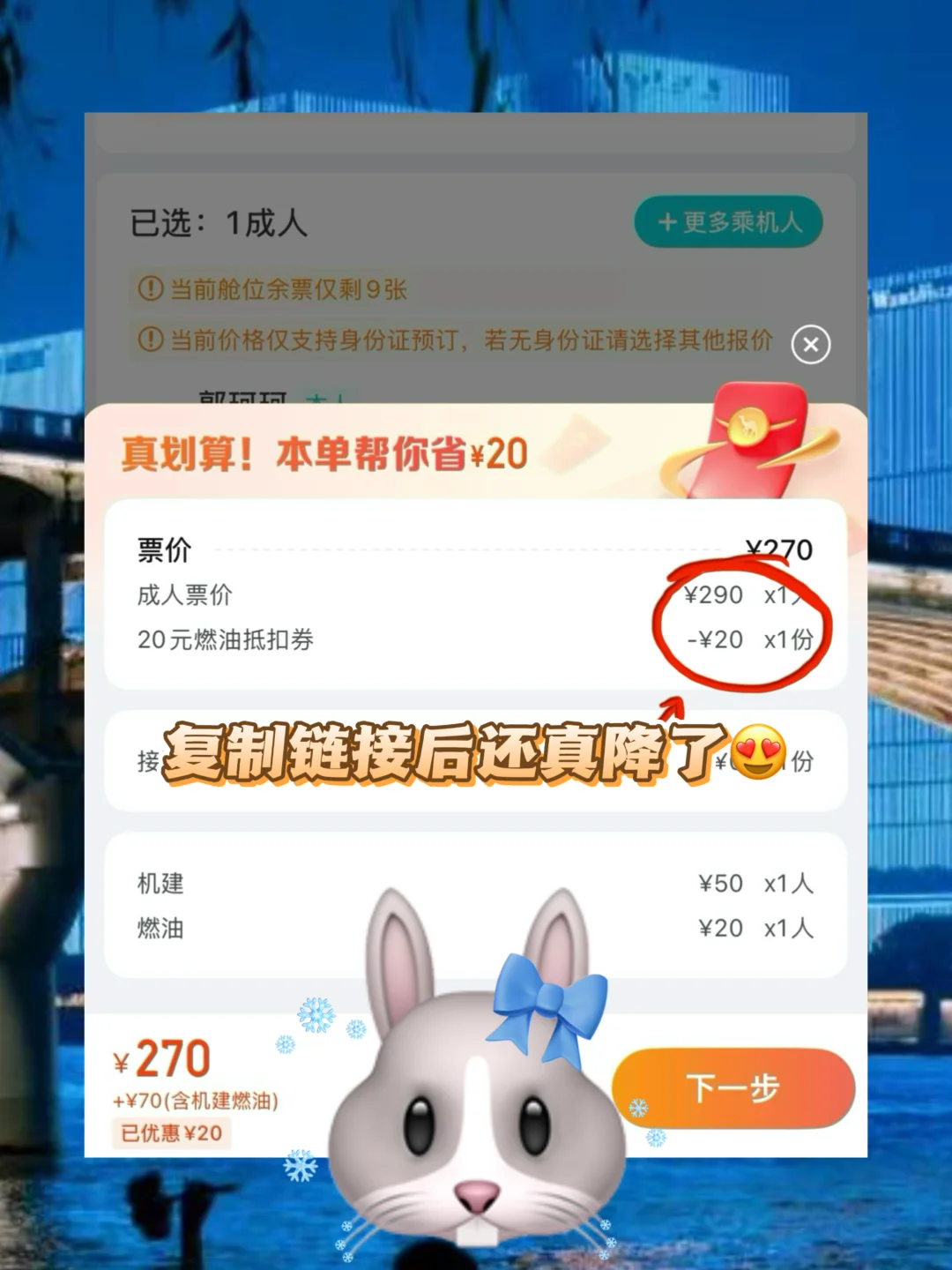 看到了我刚好要订的机票竟然比其他平台还便宜,而且还能额外领优惠券,
