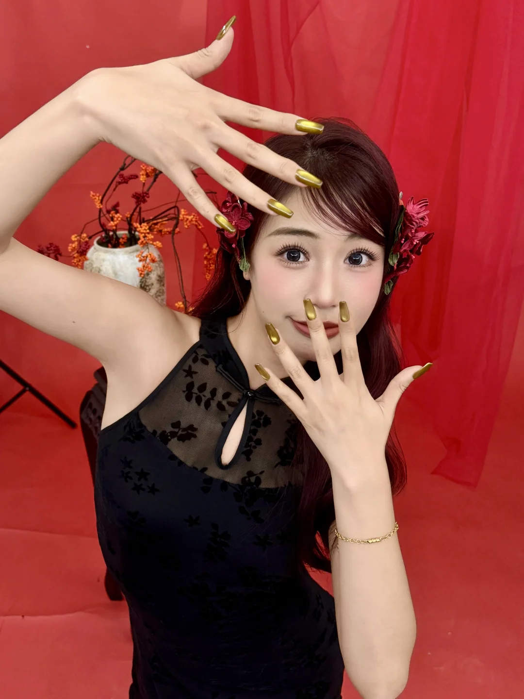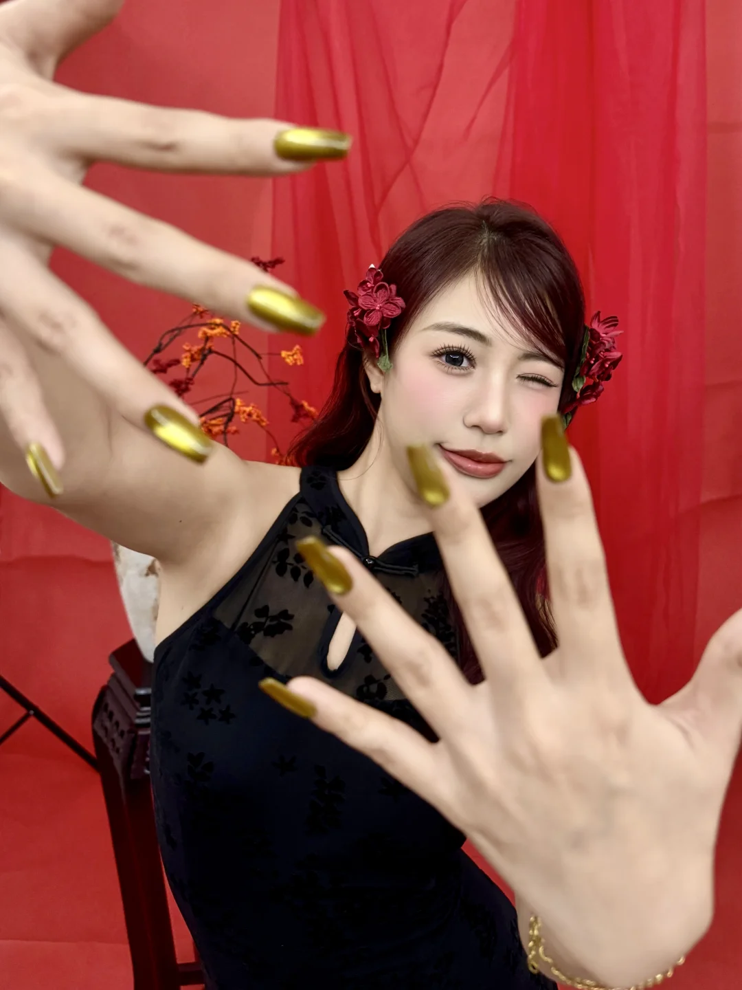 棕色打底➕金色细闪➕玻璃珠猫眼 显白又贵气 给过年不想做红色美甲的宝宝一点灵感