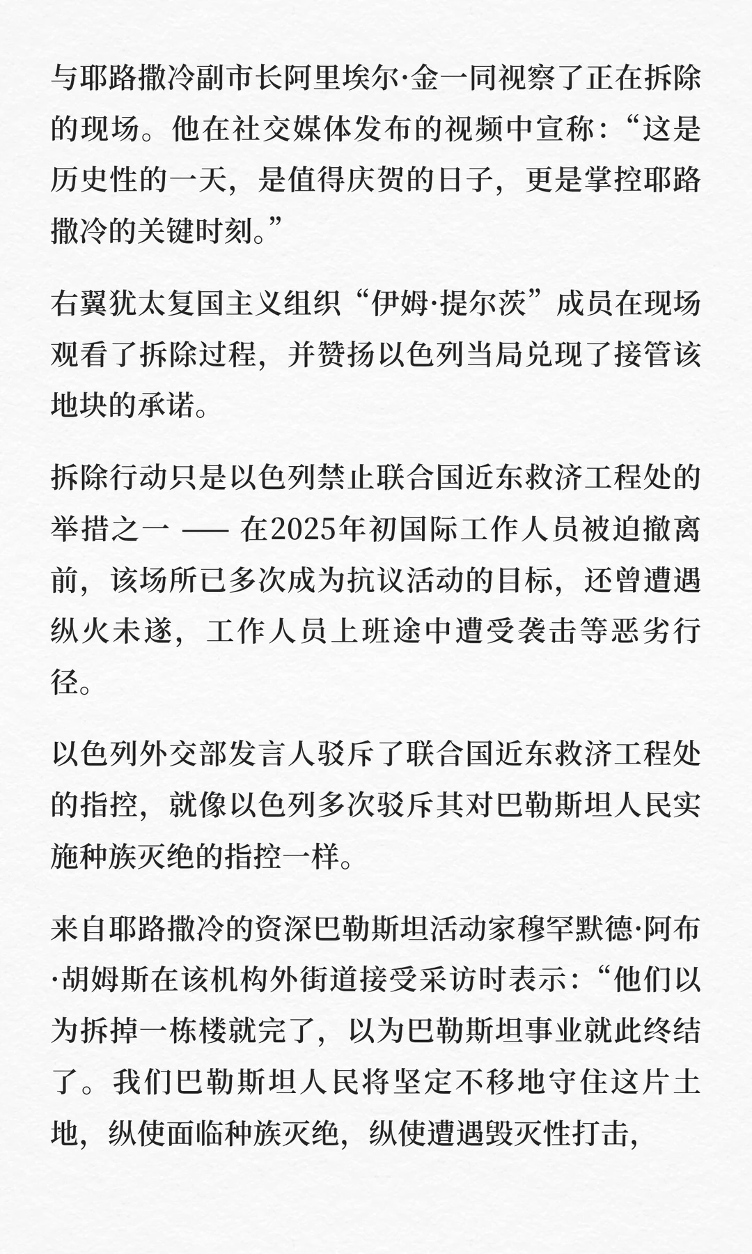 以色列强拆,联合国谴责