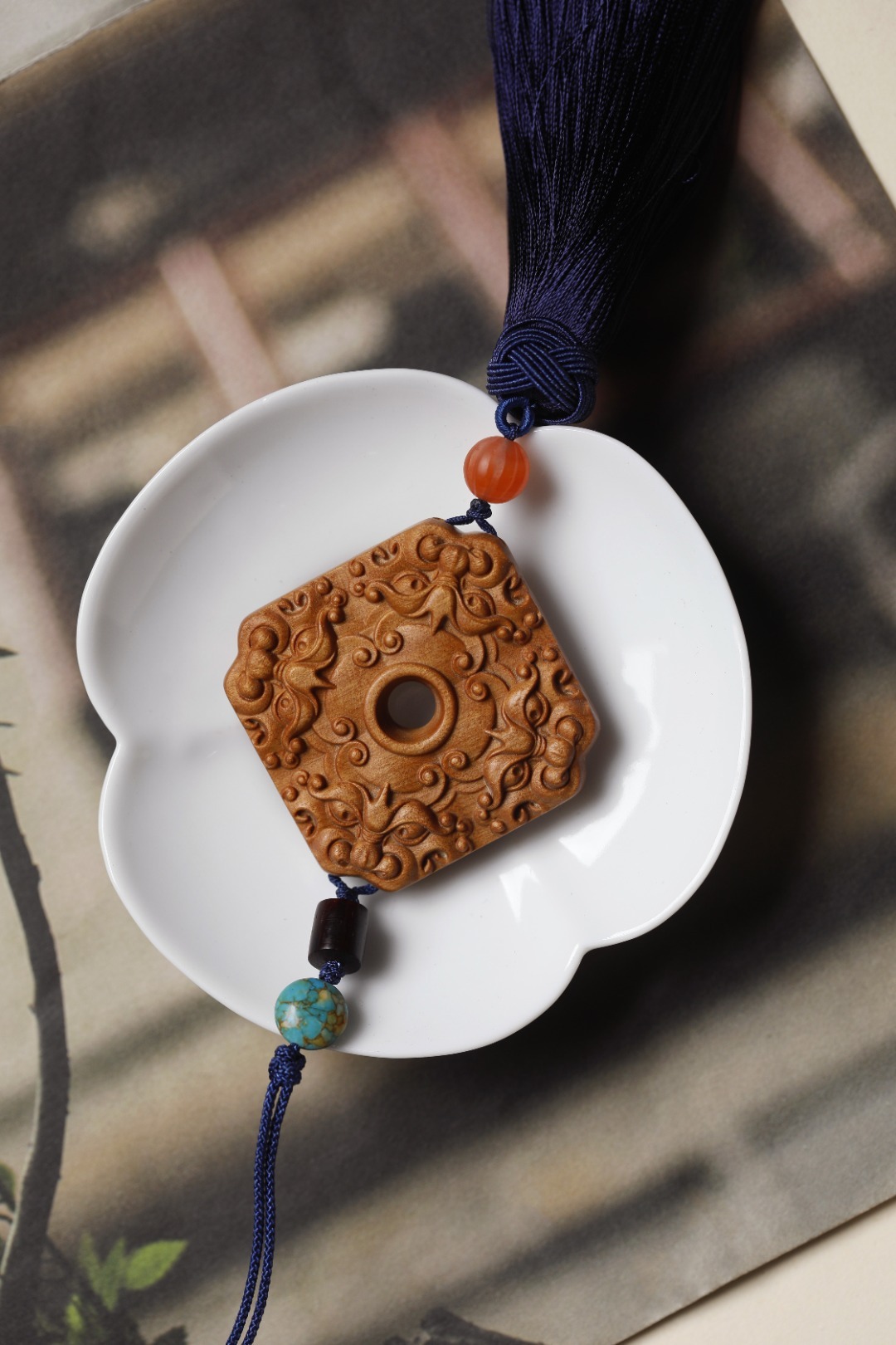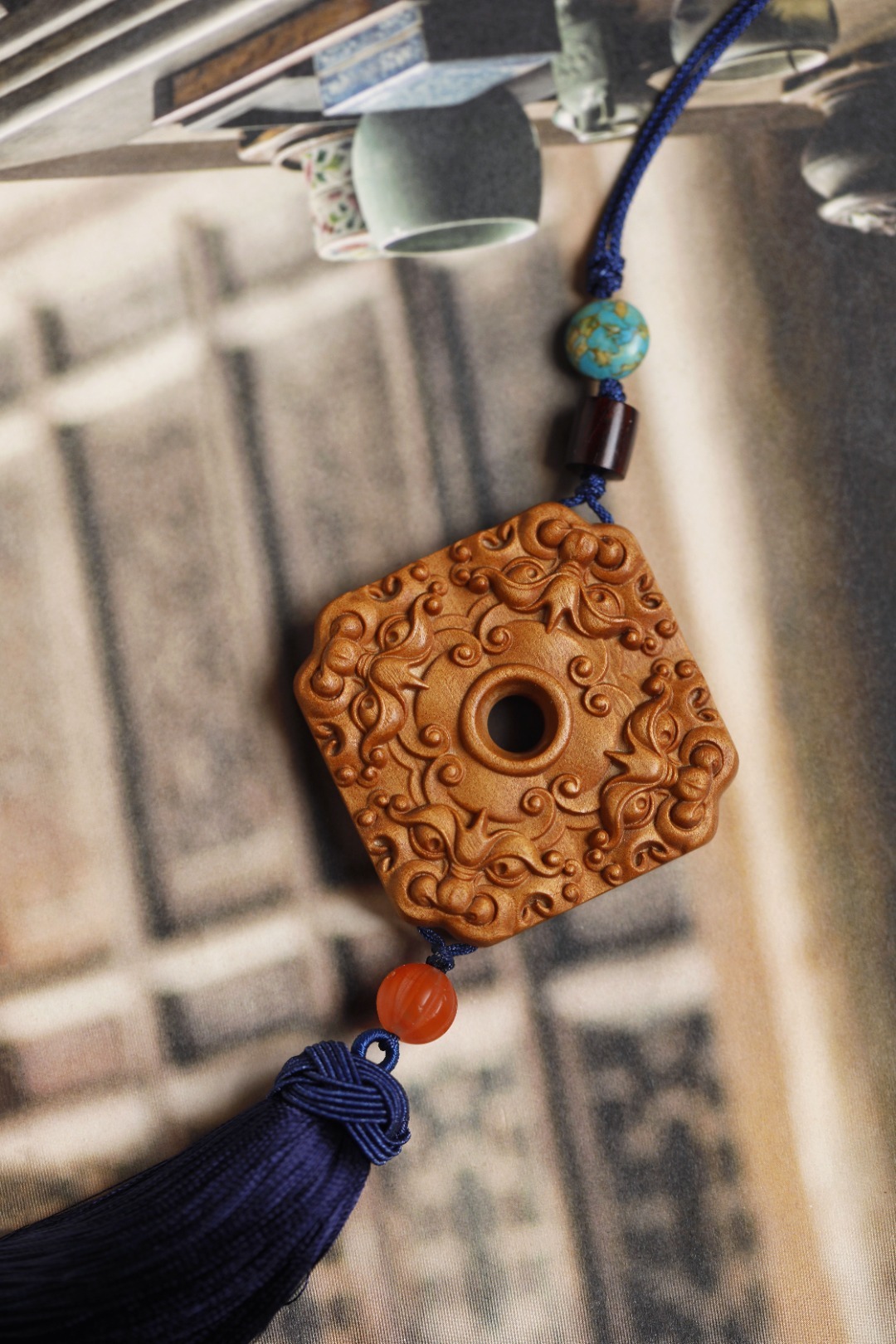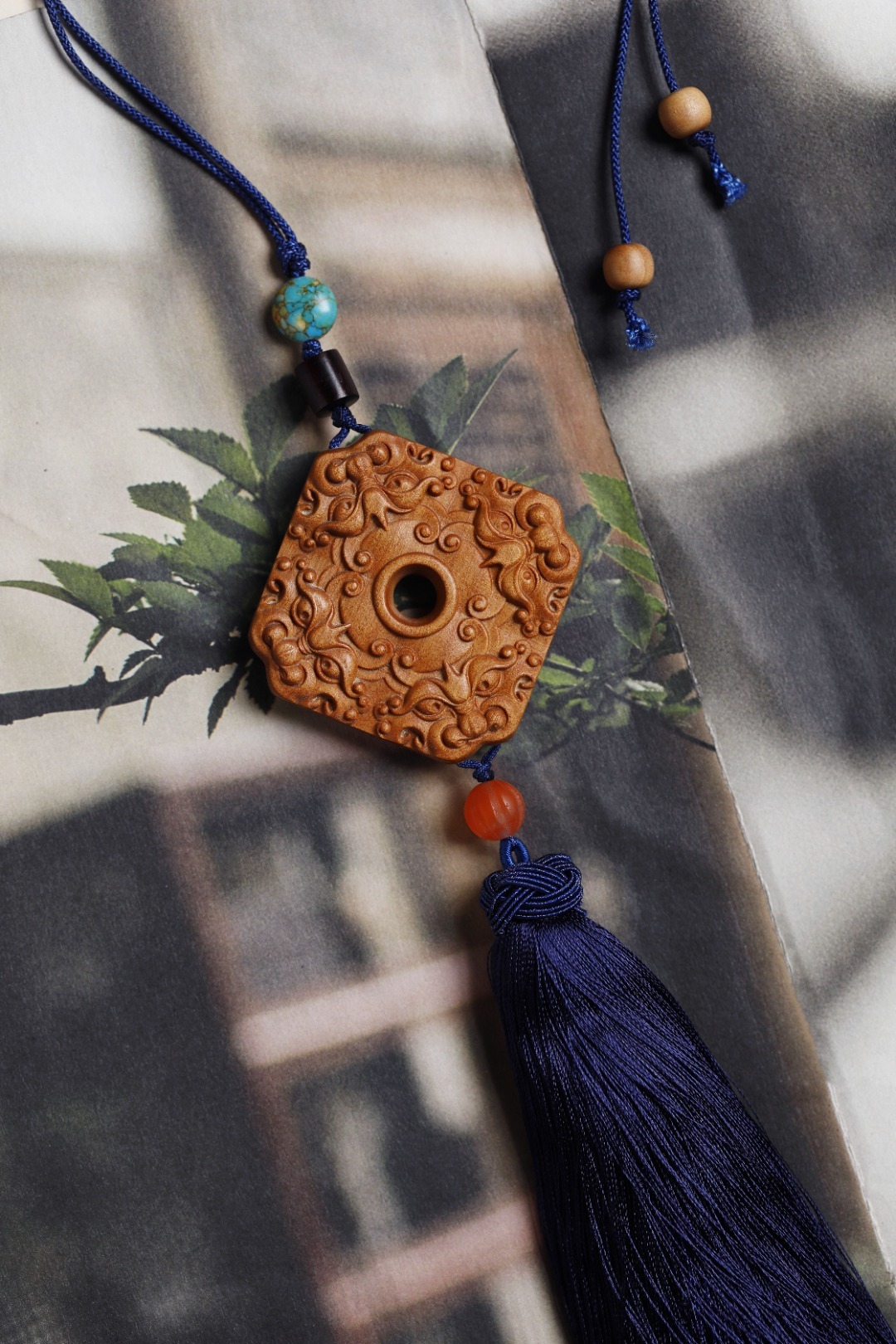 老山檀香 | 四方招财 挂件色泽典雅奶香味浓,素雅而不失精致,貔貅,招财神兽,寓意嘴大吃四方,配以宫廷流苏,贵气而不张扬,可车挂亦随身携带,步步生香。4.5*5.3*1cm 老山檀香 | 四方招财 挂件