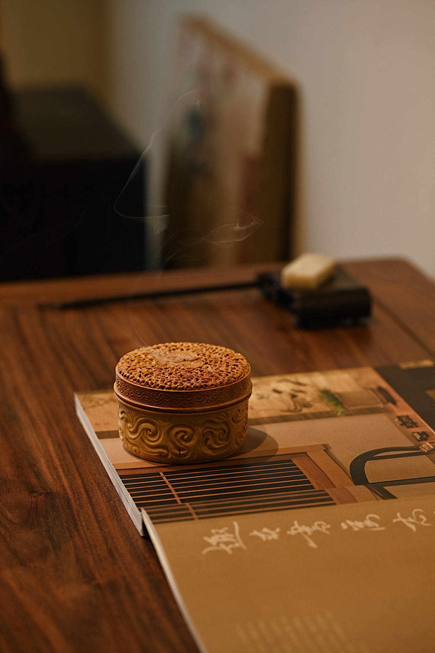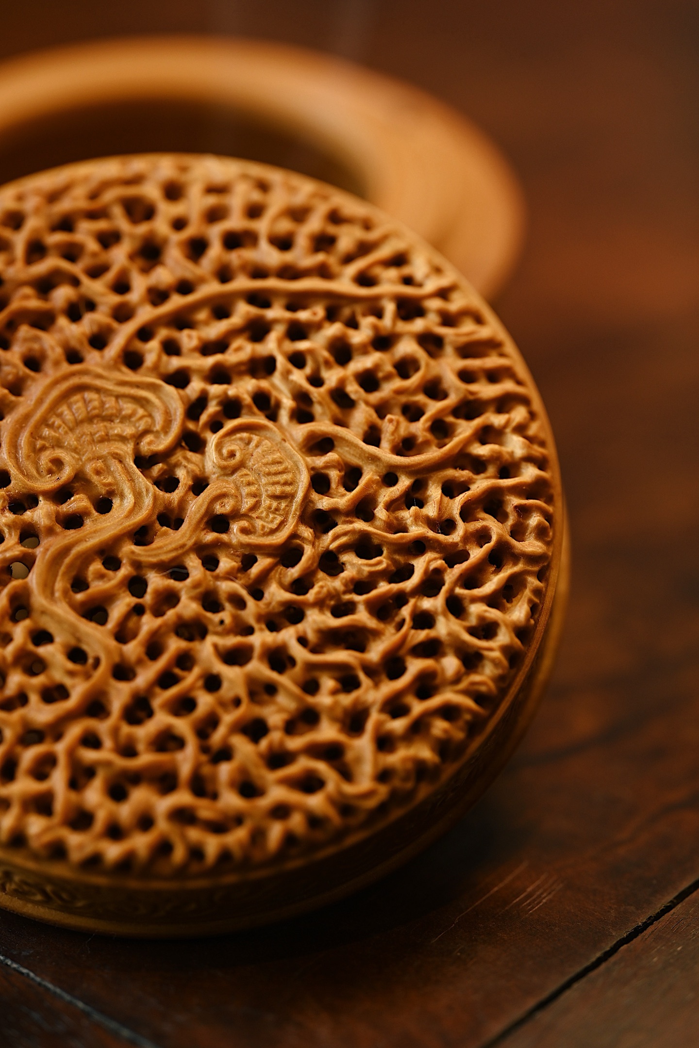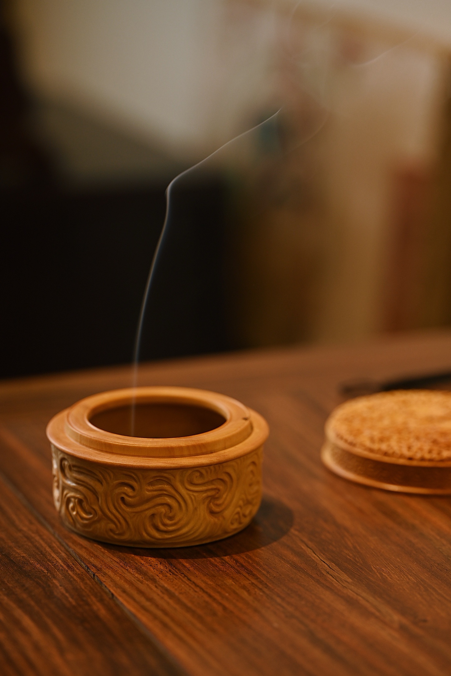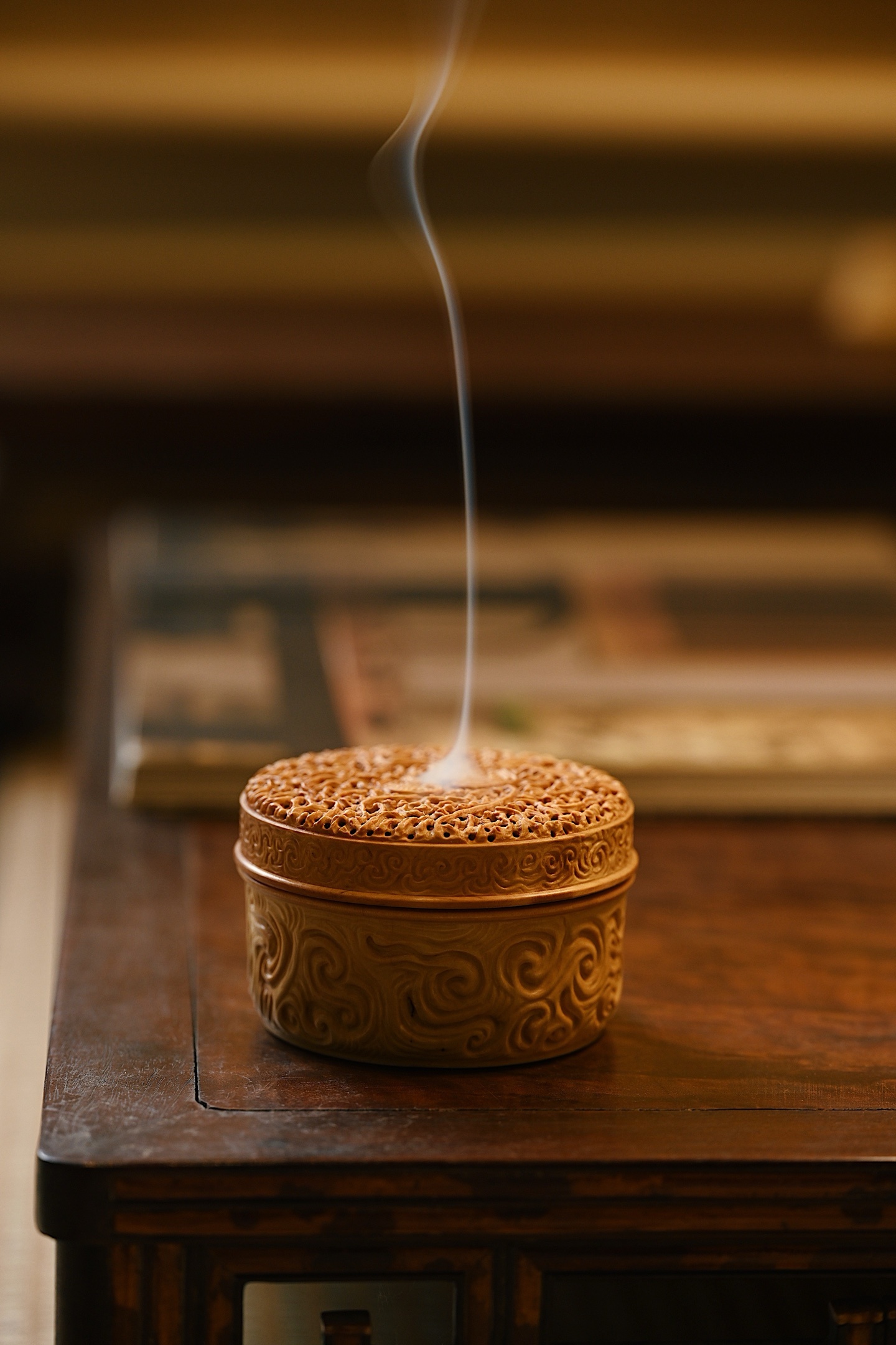 黄杨木 | 灵芝 香炉以黄杨木为材雕琢而成,木质细腻,色泽黄润,天然灵芝古朴雅致