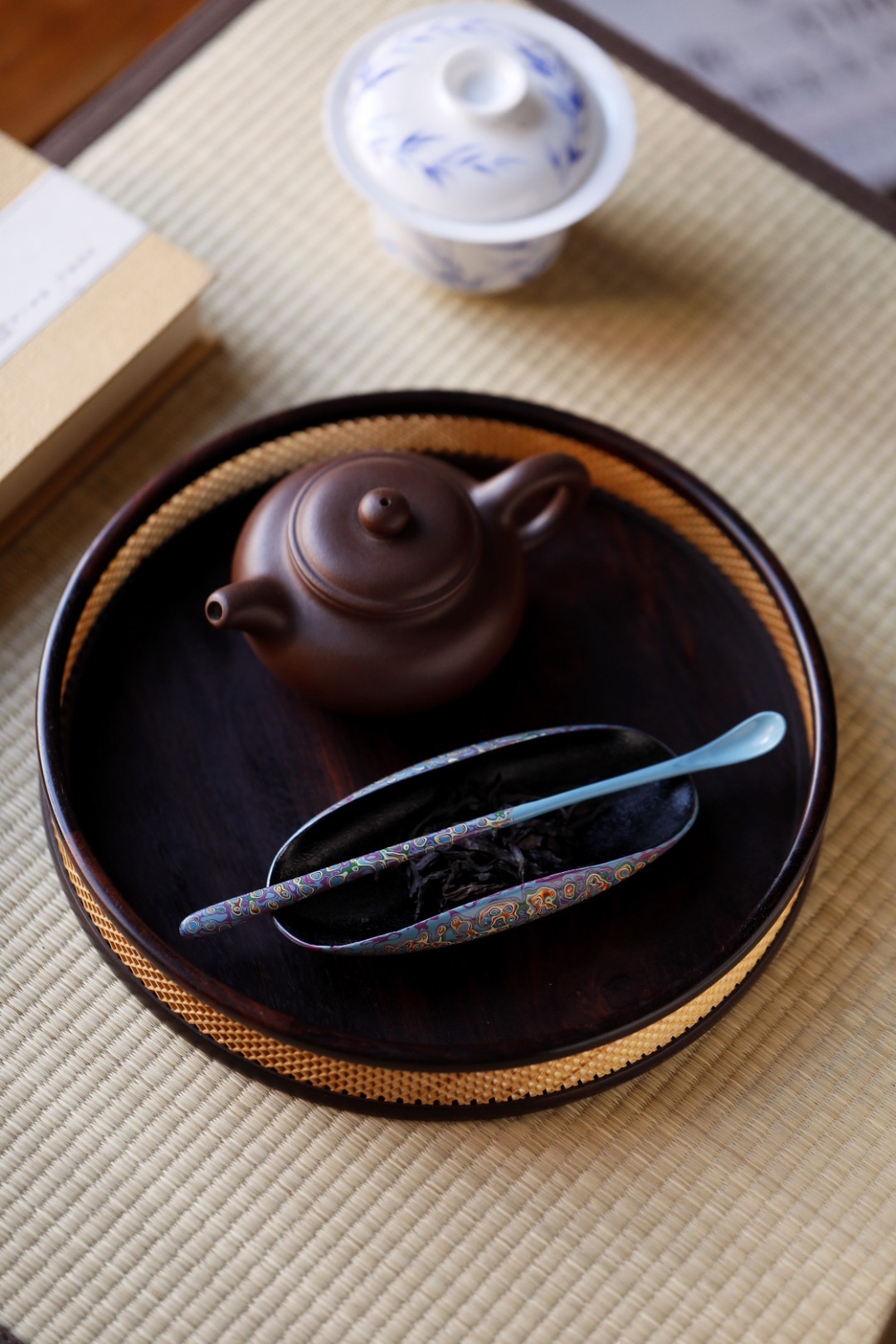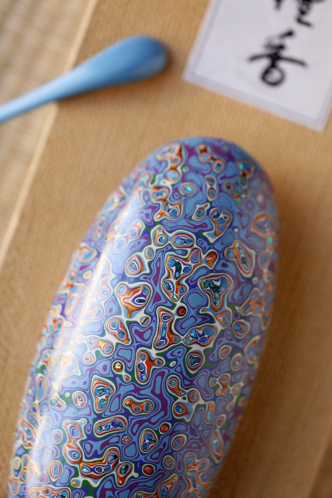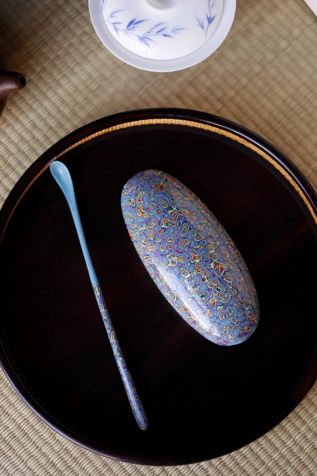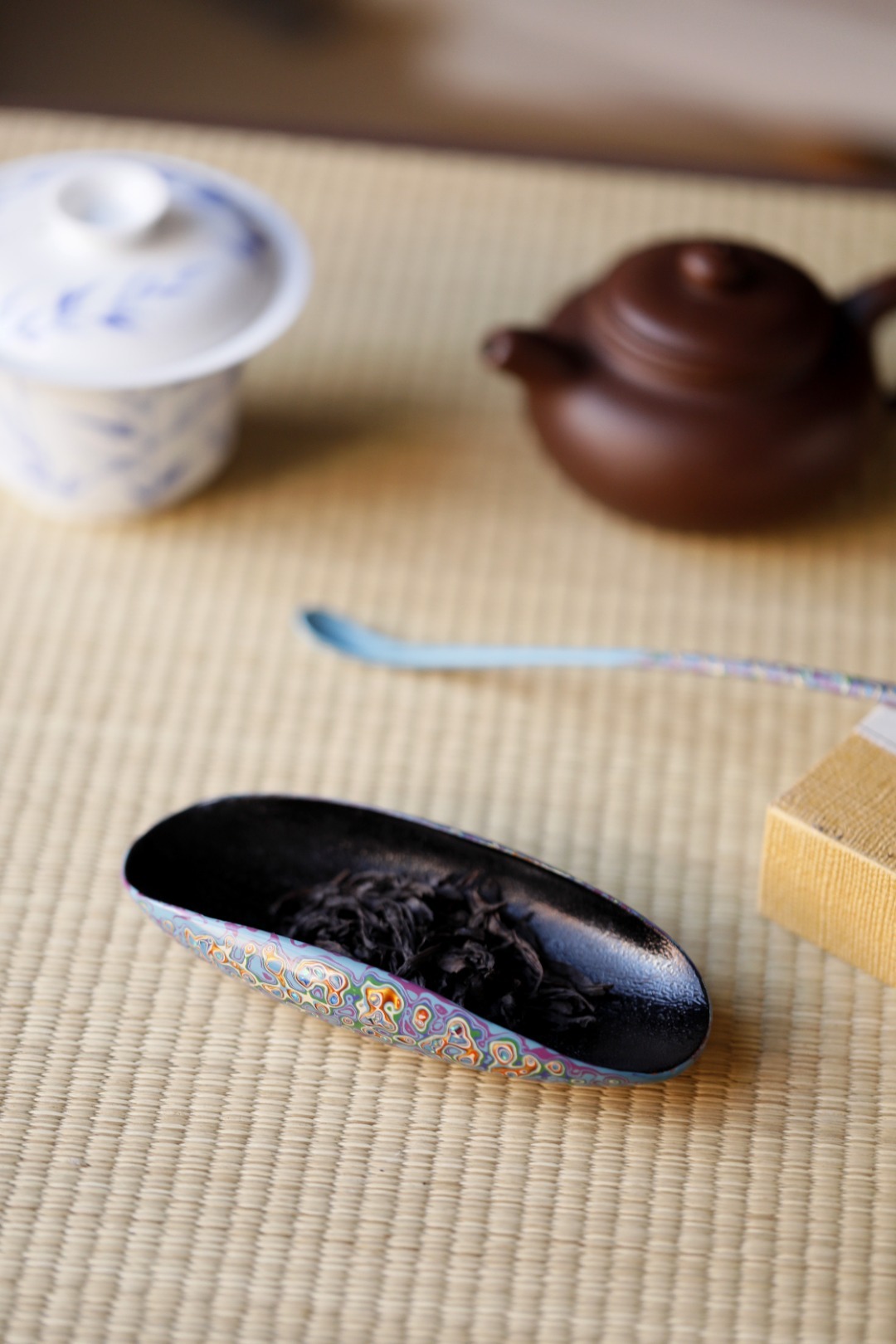 大漆【青橙】茶则紫光檀为底胚,裱麻布、刮灰、打磨、髹漆反反复复,历久弥新,人常抚