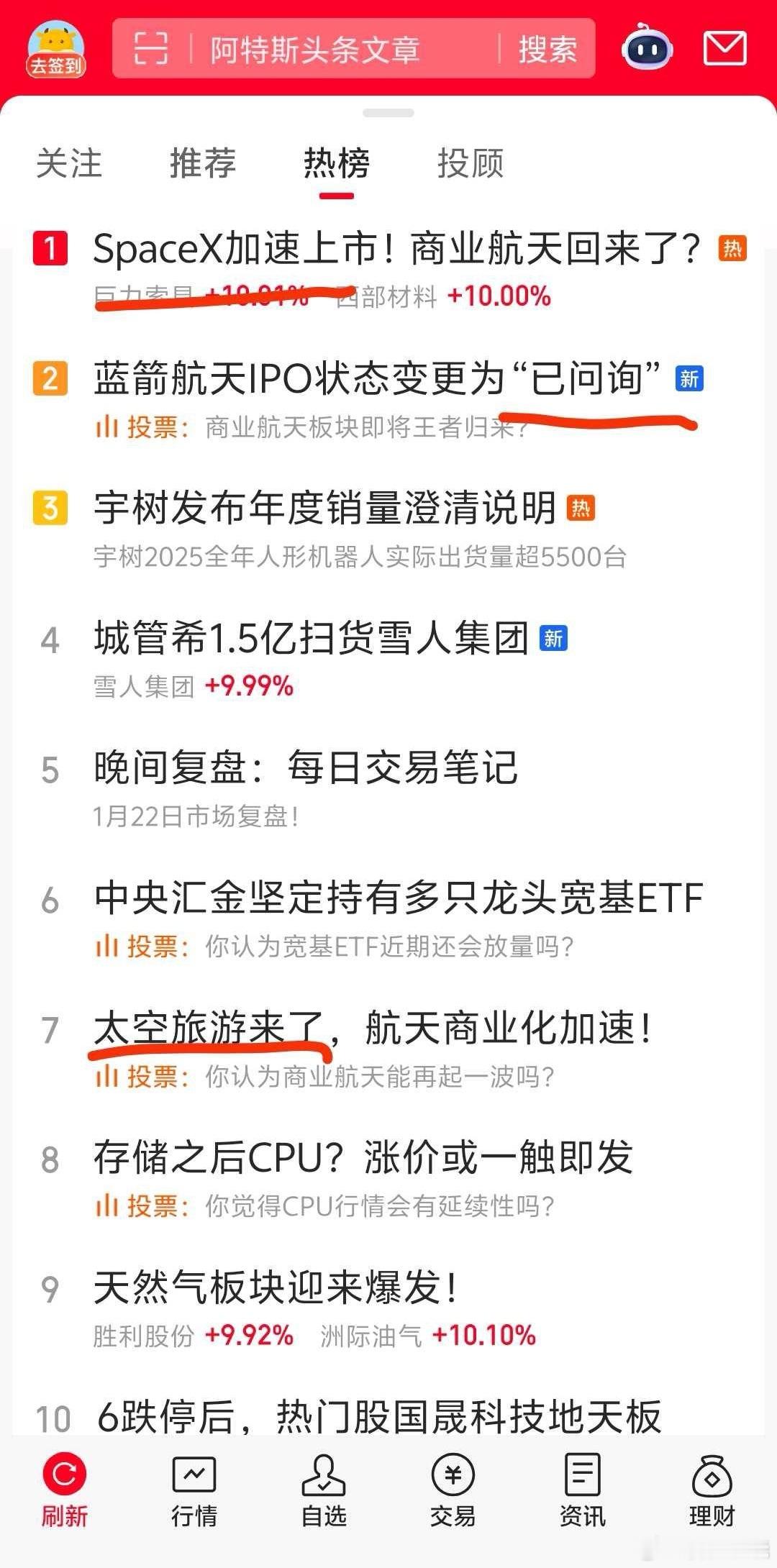商业航天每天是不是一堆利好推送出来,是不是可以这样理解,就是推力过于强,强的离谱了,才需要提前打压一下大家的做多热情,要不每天数个利好发出来,中美每天互相比拼利好速度,那就相当于火上浇油,如果不压制一下这你不知道能疯涨到什么程度?