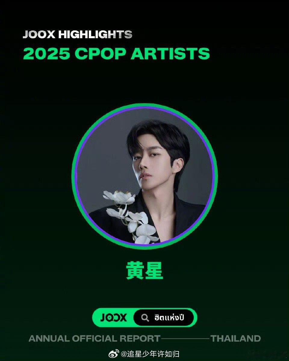 黄星最受欢迎华语歌手 黄星用实力打开了海外市场!这份来自泰国的重量级认可,让“华语歌手”的定义更具国际视野。恭喜他用声音完成了一次成功的文化外交。