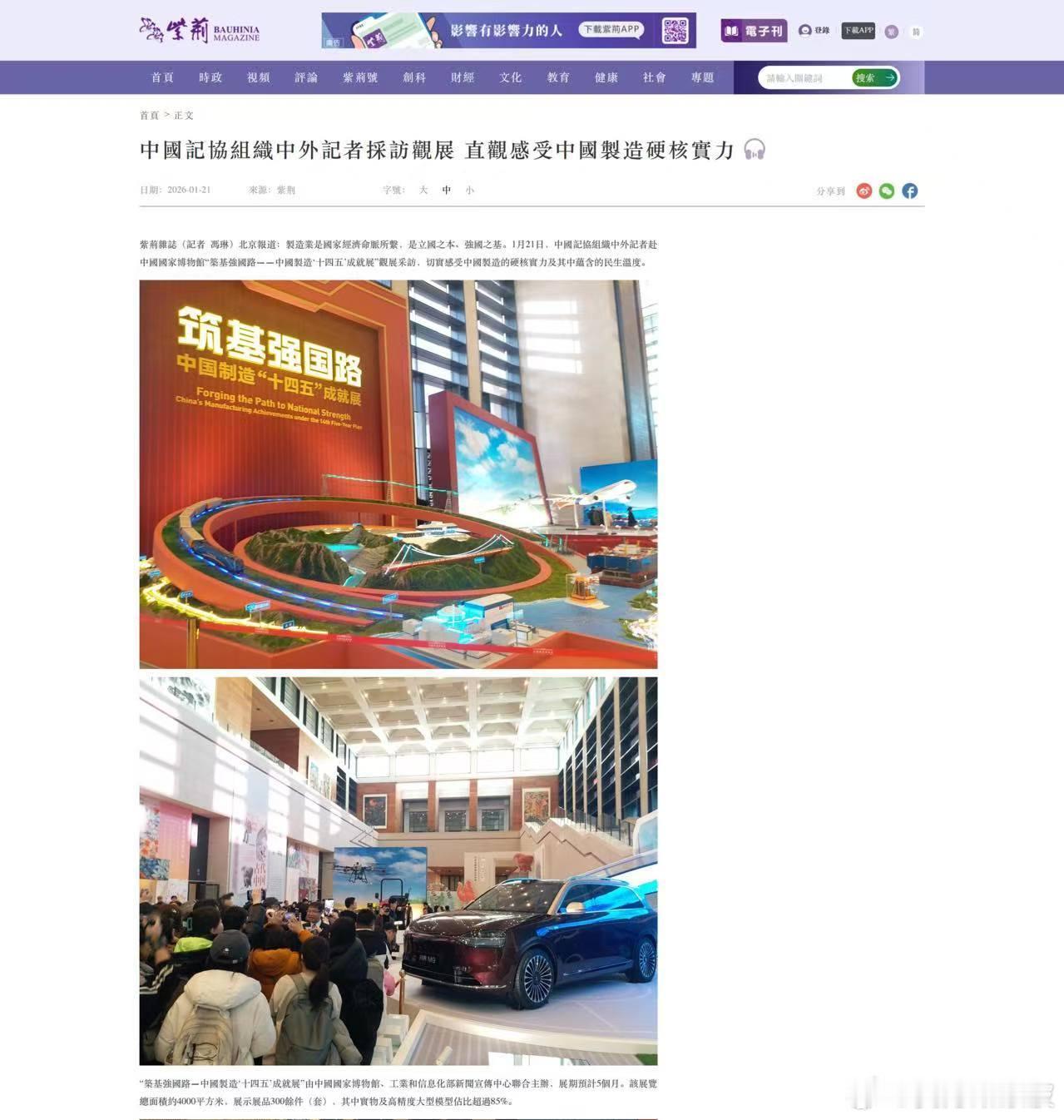 中国记协1月21日组织中外记者走进中国国家博物馆,参观中国制造“十四五”成就展。
