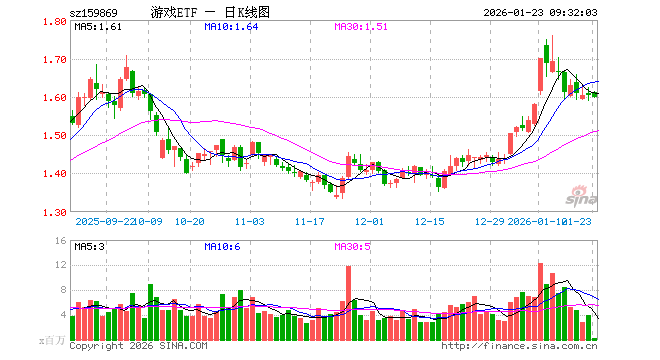 1月23日,游戏ETF(159869)开盘涨0.44%,报1.610元。游戏ETF(159869)重仓股方面,巨人网络开盘涨0.93%,恺英网络涨0.12%,三七互娱涨1.60%,光线传媒涨0.41%,神州泰岳涨0.32%,完美世界跌0.06%,吉比特涨0.46%,掌趣科技涨0.17%,游族网络涨0.33%,浙数文化涨0.60%。