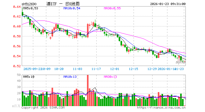 1月23日,酒ETF(512690)开盘涨0.00%,报0.529元。酒ETF(512690)重仓股方面,贵州茅台开盘涨0.00%,五粮液涨0.04%,泸州老窖涨0.00%,山西汾酒涨0.22%,洋河股份跌0.03%,今世缘跌0.32%,青岛啤酒涨0.03%,古井贡酒涨0.01%,燕京啤酒跌0.08%,舍得酒业涨0.06%。