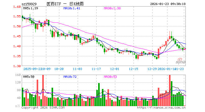 1月23日,医药ETF(159929)开盘涨0.15%,报1.381元。医药ETF(159929)重仓股方面,药明康德开盘涨0.42%,恒瑞医药涨0.49%,迈瑞医疗涨0.65%,联影医疗涨0.11%,爱尔眼科涨0.00%,片仔癀跌0.01%,云南白药涨0.05%,新和成涨0.25%,华东医药涨0.08%,上海莱士涨0.00%。