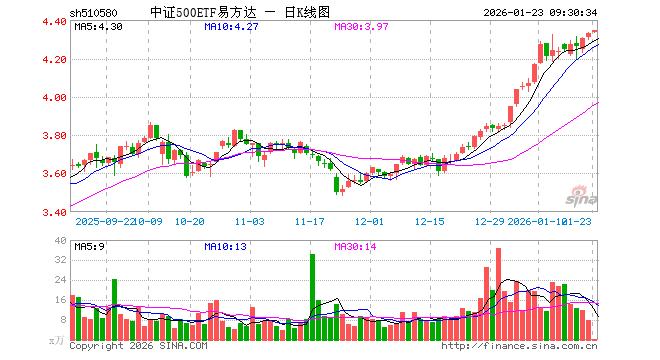 1月23日,中证500ETF易方达(510580)开盘涨0.16%,报4.335元。中证500ETF易方达(510580)重仓股方面,英维克开盘涨0.00%,信维通信涨1.23%,巨人网络涨0.93%,航天电子涨1.05%,中矿资源涨0.94%,中国卫星涨0.61%,先导智能涨0.00%,卧龙电驱跌0.02%,赤峰黄金涨3.62%,兴业银锡涨4.44%。