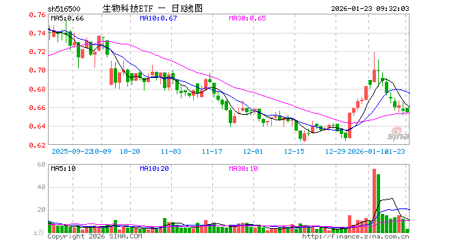 1月23日,生物科技ETF(516500)开盘涨0.46%,报0.659元。生物科技ETF(516500)重仓股方面,药明康德开盘涨0.42%,恒瑞医药涨0.49%,迈瑞医疗涨0.65%,复星医药涨0.37%,上海莱士涨0.00%,百济神州涨0.59%,长春高新涨0.21%,康龙化成涨0.67%,泰格医药跌0.08%,甘李药业涨0.01%。