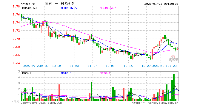 1月23日,医药ETF广发(159938)开盘涨0.15%,报0.672元。医药ETF广发(159938)重仓股方面,恒瑞医药开盘涨0.49%,药明康德涨0.42%,迈瑞医疗涨0.65%,联影医疗涨0.11%,爱尔眼科涨0.00%,片仔癀跌0.01%,云南白药涨0.05%,新和成涨0.25%,华东医药涨0.08%,复星医药涨0.37%。