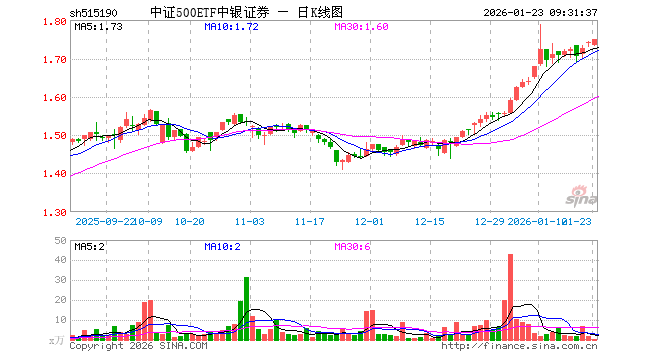 中证500ETF中银证券(515190)业绩比较基准为中证500指数收益率,管理人为中银国际证券股份有限公司,基金经理为张艺敏、刘先政,成立(2020-04-30)以来回报为74.47%,近一个月回报为15.44%。