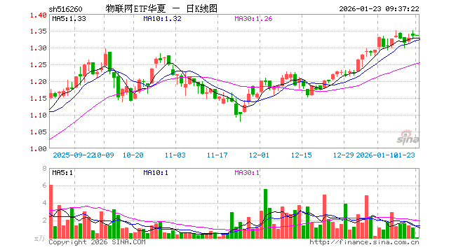 1月23日,物联网ETF华夏(516260)开盘涨0.07%,报1.336元。物联网ETF华夏(516260)重仓股方面,中际旭创开盘跌1.13%,立讯精密涨0.39%,汇川技术涨0.29%,兆易创新跌1.81%,美的集团涨0.10%,中兴通讯跌0.50%,科大讯飞涨0.96%,海康威视涨0.00%,豪威集团涨0.01%,海尔智家涨0.31%。