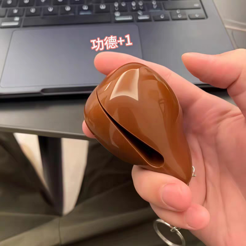 菩提本无树,明镜亦非台,木鱼轻敲,功德暗增。放下烦恼,心自静。泡泡玛特电子木鱼爆火