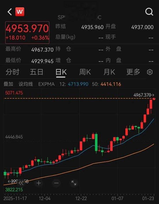 现货黄金盘中一度突破4960美元/盎司,续创历史新高。
