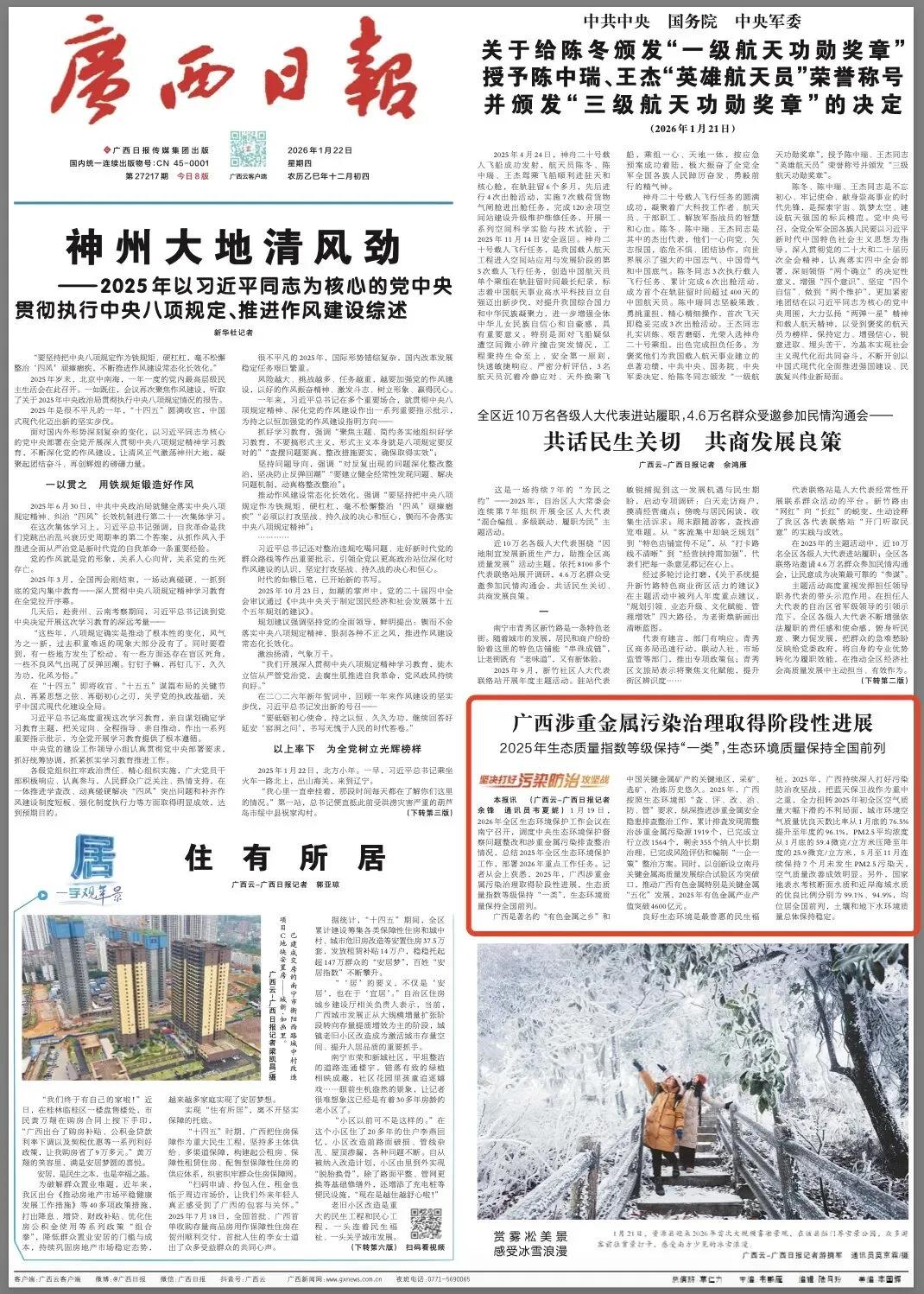 2026年1月22日《广西日报》头版截图。