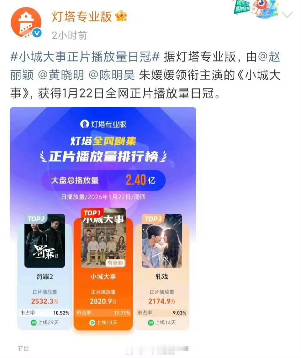 《小城大事》真实的各项数据都是top1☝这绝非偶然,这背后是作品从内核到表达的体