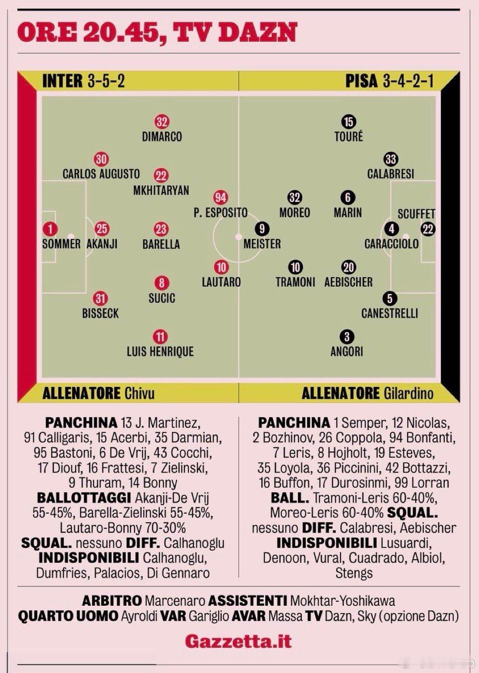 米兰体育报的最终首发预测如下国际米兰国际米兰1比3阿森纳热点现场 预计三埃和苏西奇首发