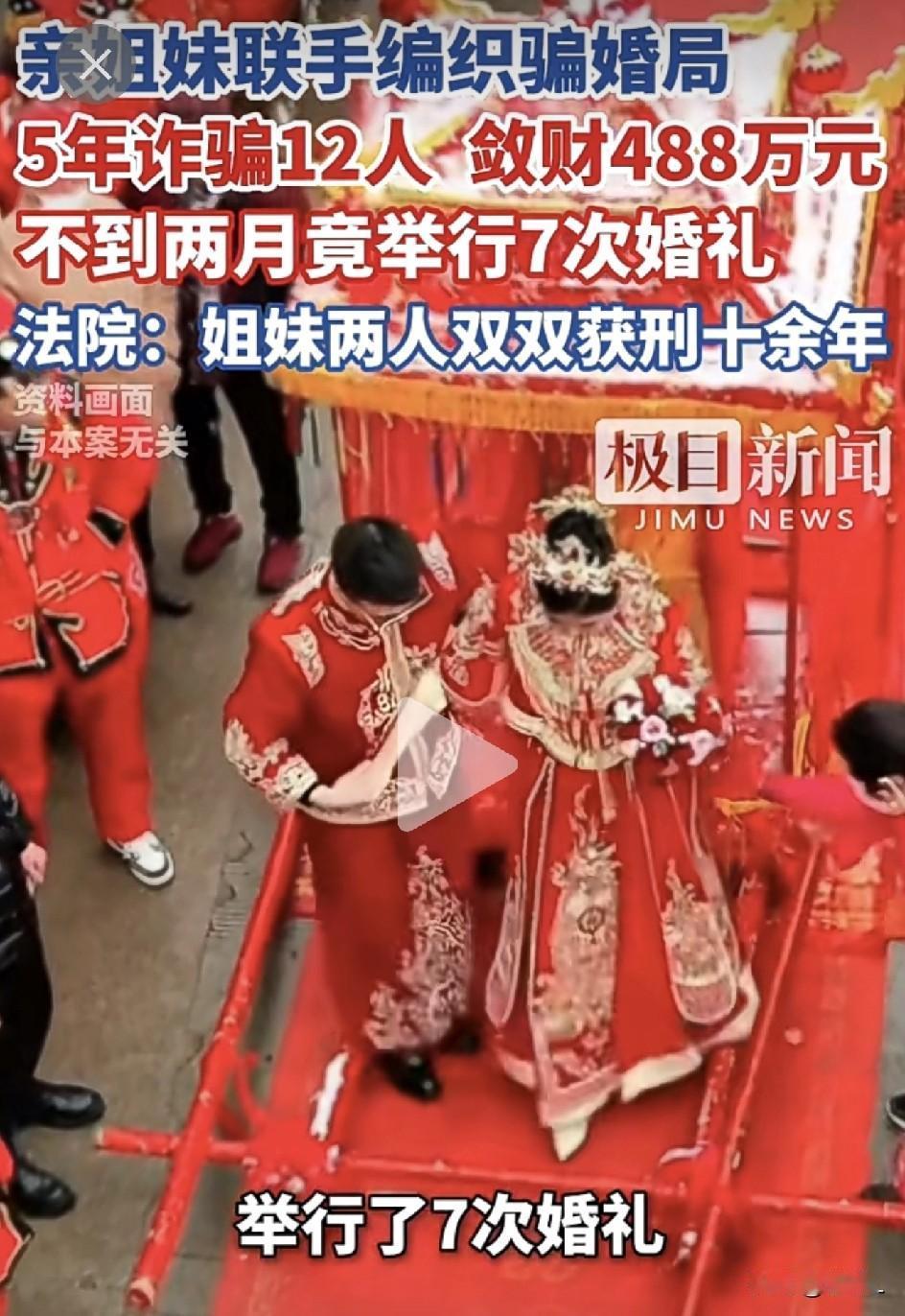 河南上演“一人分饰七新娘”大戏!45天结7次婚,狂卷彩礼488万,亲姐当“财务总监”喊666! 见过狠人,没见过这么“卷”的!河南西华县最近判了一出魔幻大戏,堪称“结婚刺客”天花板—— 90后女子冯某,5年时间,换了12个“老公”!平均半年换一个,光去年年底那一个半月,就一口气办了7场婚礼!场场收彩礼,场场跑路快,单笔最高纪录66万,总战绩高达488万! 她亲姐更是个“人才”,专职当“财务总管”,负责收钱、记账、编瞎话:“我妹病了!”“她打工太忙了!”硬是把一帮急着娶媳妇的农村小伙忽悠得团团转。 更绝的是,这位姐不仅已婚,还跟其中一个“老公”生了娃!就这样,还能一边当妈,一边当“新娘”,时间管理能力让罗志祥都直呼内行! 她咋做到的? 化名“赵某玲”,专找农村大龄男青年,通过媒人放话:“姑娘实在,急着结婚!”从见面到办酒,最快20天一条龙,彩礼、三金、酒席钱……能捞的全捞。 直到今年1月,有位“新郎”张某发现新娘突然失联,才反应过来报警。警察一查,好家伙,银行流水像贪吃蛇,婚姻记录叠成俄罗斯方块! 去年11月底,法院判了:冯某喜提15年半豪华监狱游,亲姐也获刑11年半。现在正追赃,但钱早就不知道转哪儿去了…… 网友辣评: “这是把结婚当成加盟店了吧?开一家跑一家!” “姐,你这演技不进剧组可惜了!” “建议开通‘职业新娘’赛道,她直接夺冠。” 心疼那些被骗的老实人,攒半辈子的钱,娶了个“快闪新娘”。 所以说,结婚千万别上头,查清身份再掏钱!天上不会掉媳妇,只会掉陷阱! 素材来源:极目新闻,侵联删!
