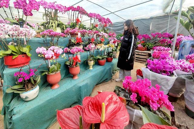 位于花园南路的聊大花卉园内,工作人员正在整理货架上的蝴蝶兰