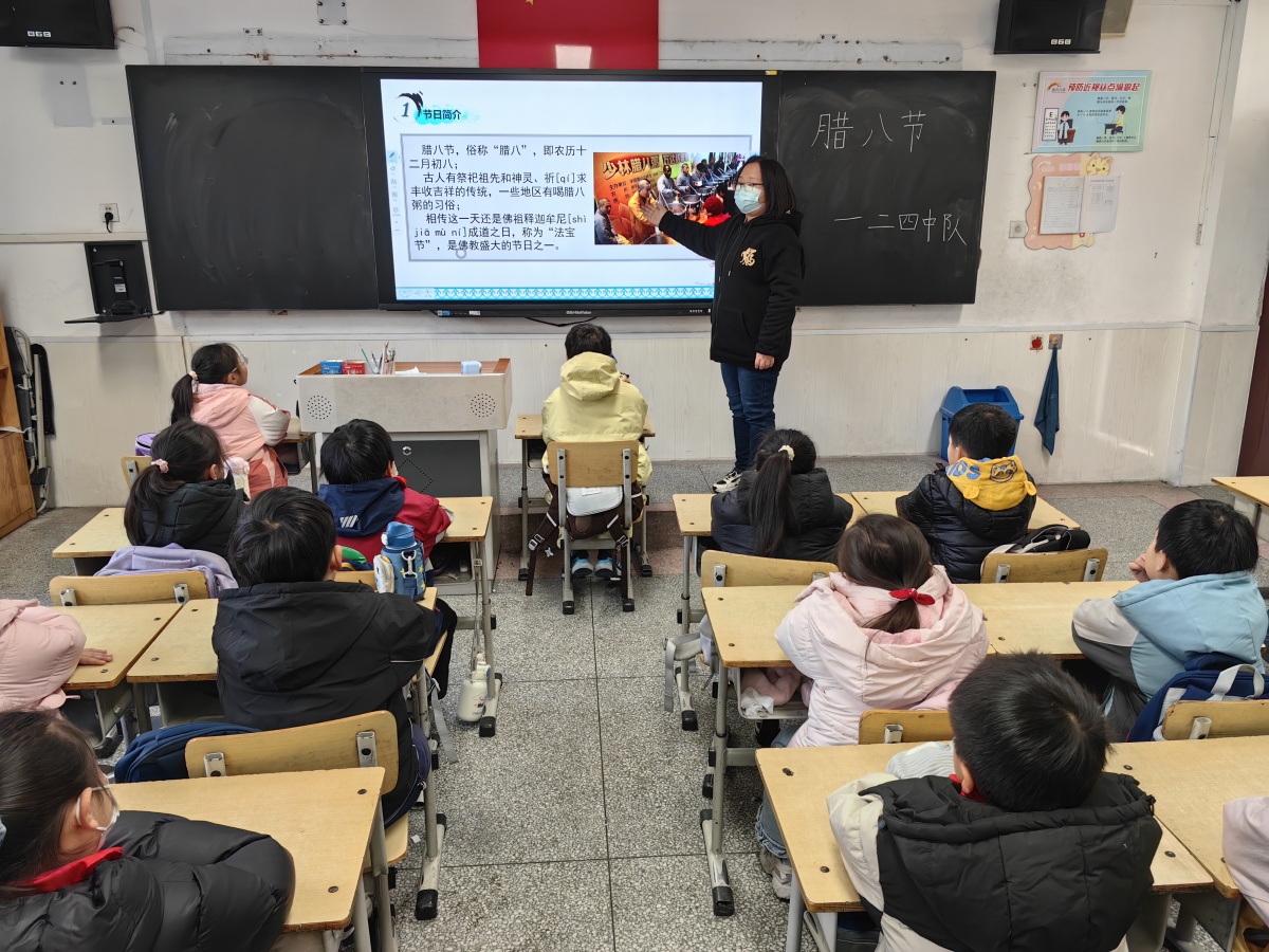 活动伊始,各班班主任通过PPT讲解、播放动画短片等形式,向学生介绍腊八节的起源、传说故事和传统习俗。从“赤豆打鬼”的民间传说,到熬腊八粥、泡腊八蒜、扫房子的习俗,同学们听得津津有味,对这个传统节日有了更深入的了解。