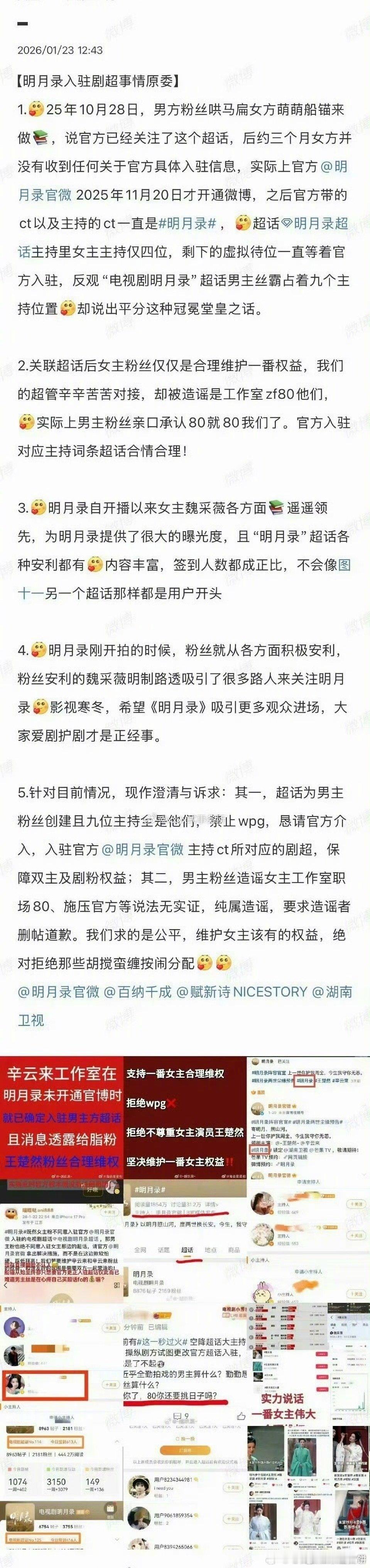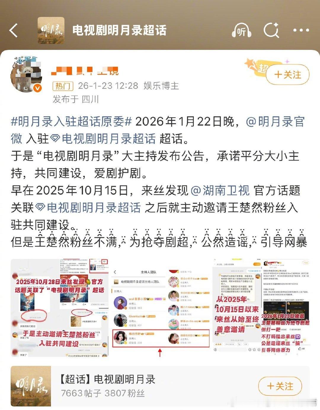 王楚然粉丝、辛云来粉丝因为明月录入驻超话的事情维权