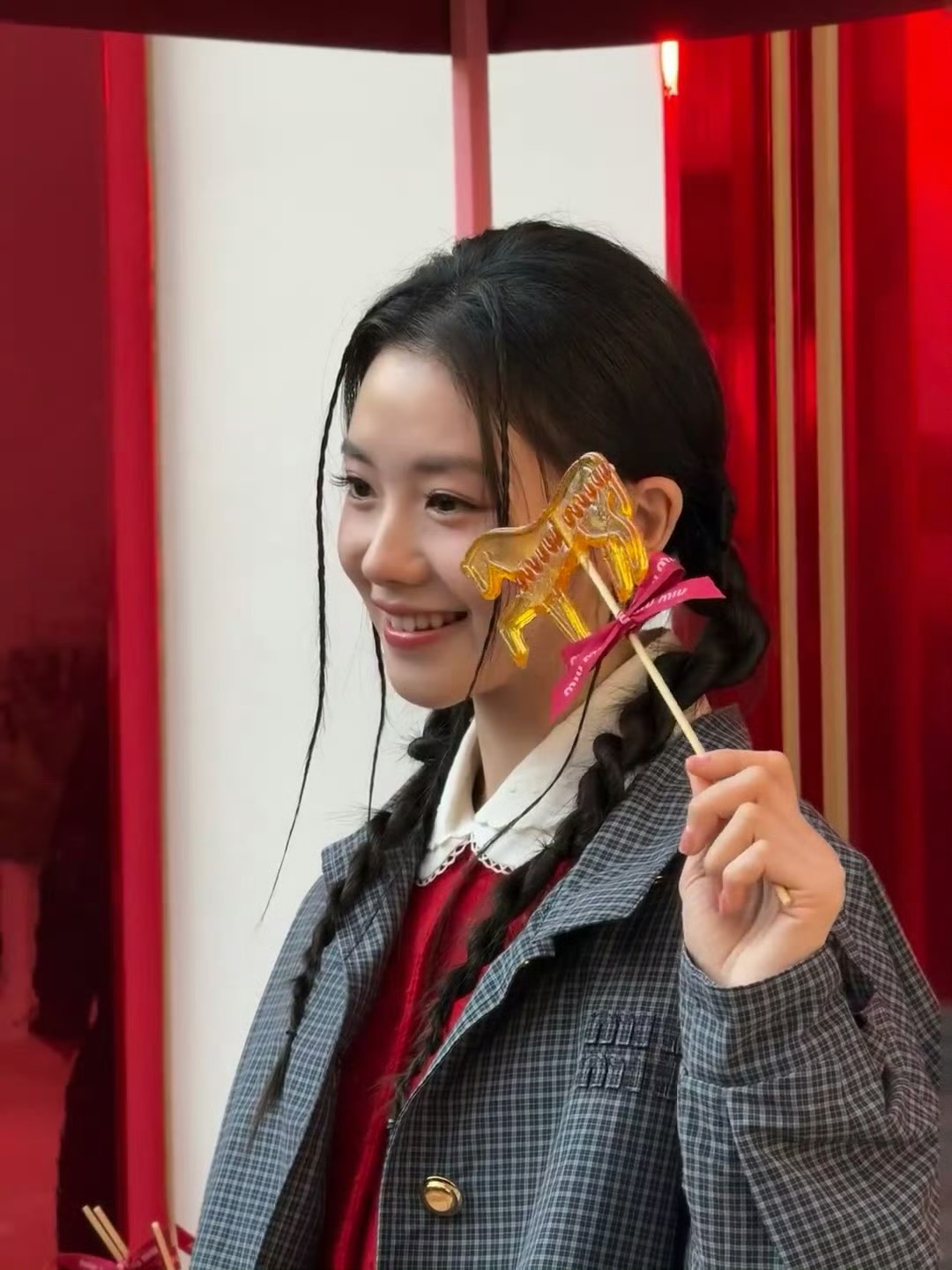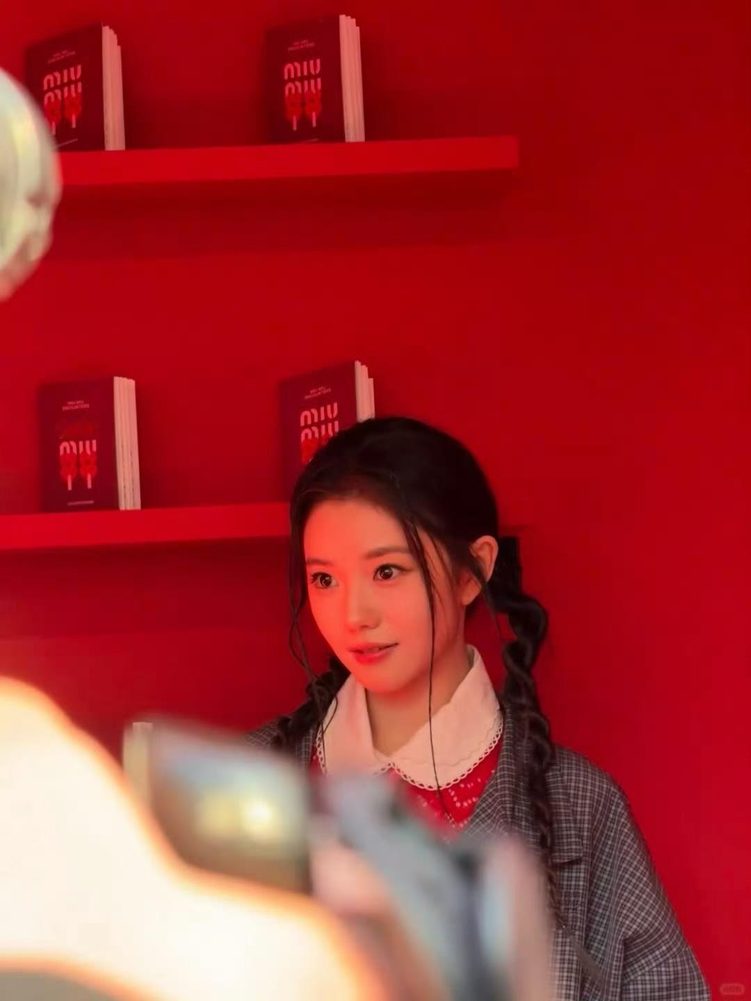 刘浩存 × 今日Miu Miu 新春活动造型生图 📸刘浩存蝴蝶结麻花辫