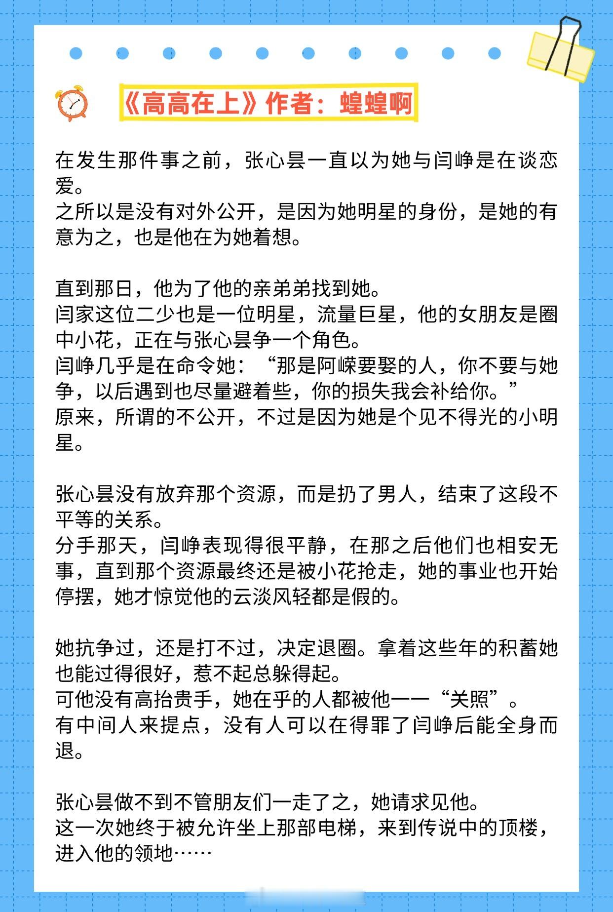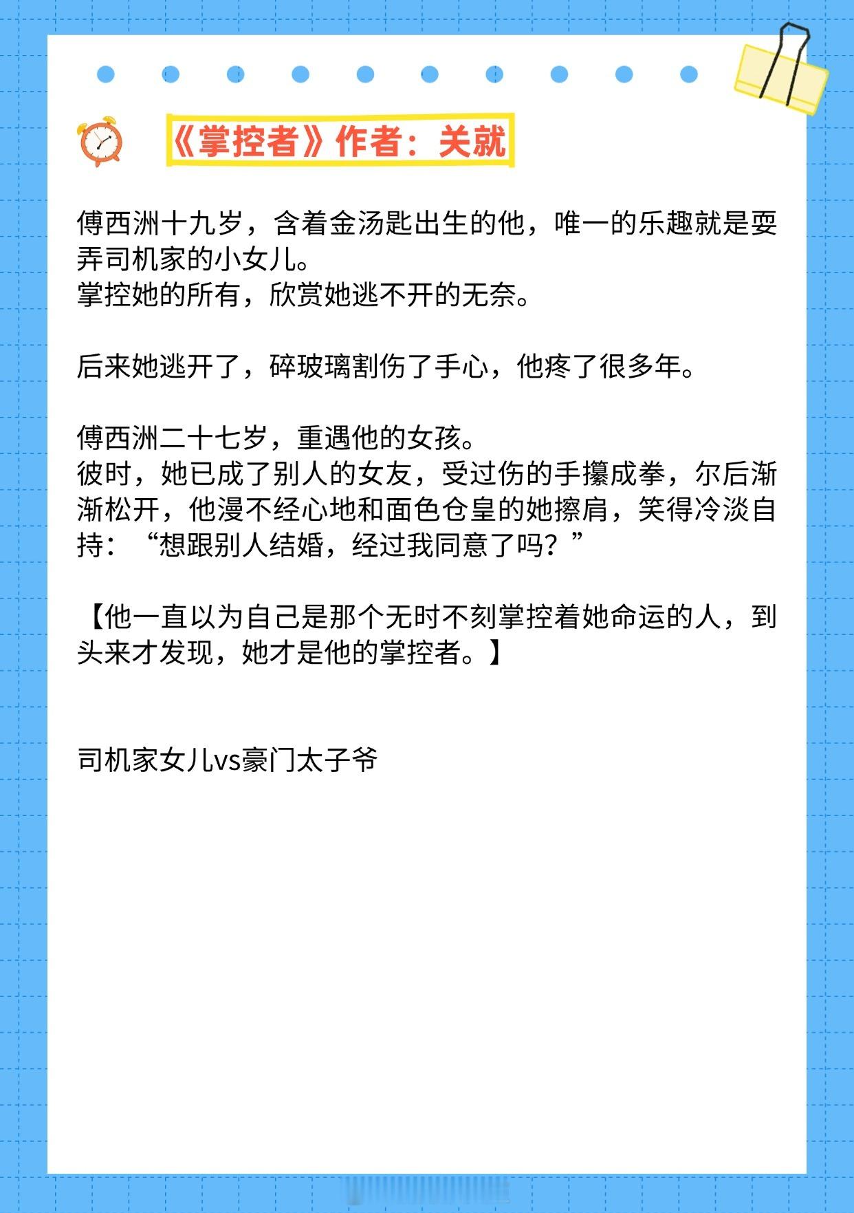 【强取豪夺现言】他终于意识到,他根本接受不了她的离开《高高在上》作者:蝗蝗啊《秘书》作者:因浓《京港夜雨》作者:秣淮《炽焰》作者:鹿灵子《掌控者》作者:关就《烂草莓》作者:梨梨亚冬推文推文言情小说推荐